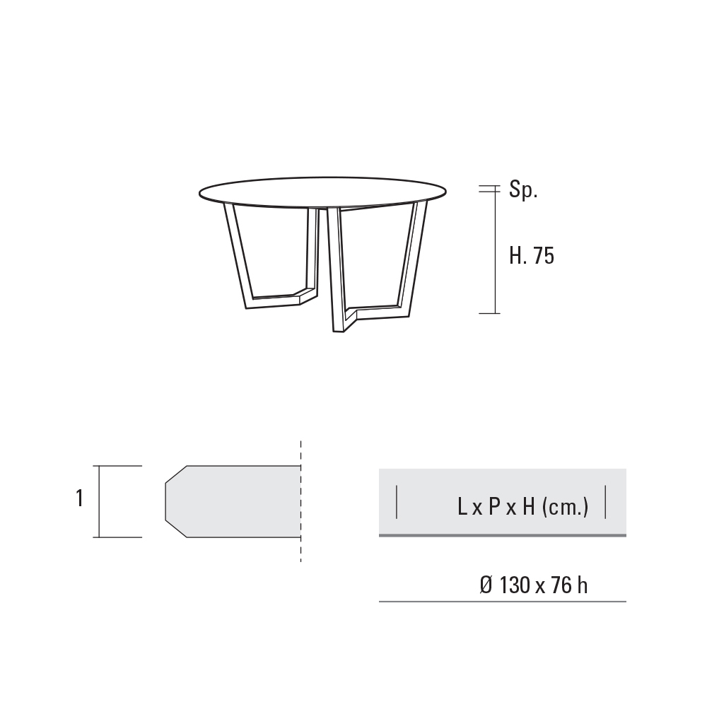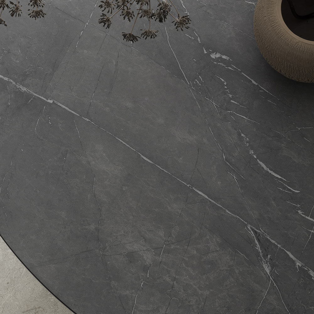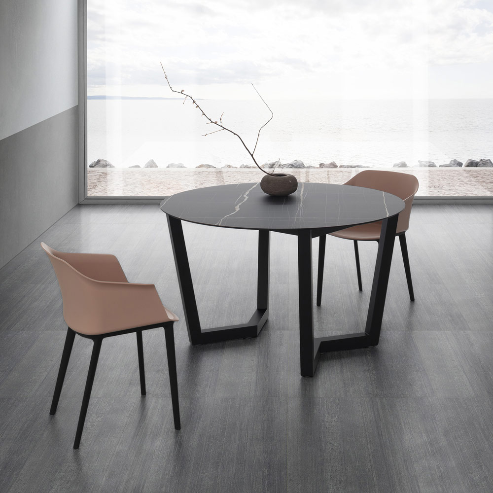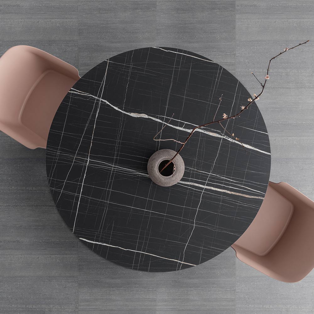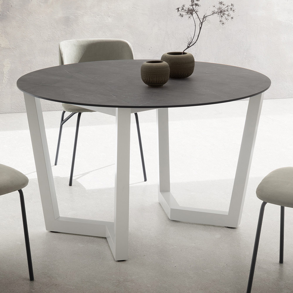 Rundt køkkenbord med lagdelt hpl-plade Made in Italy.