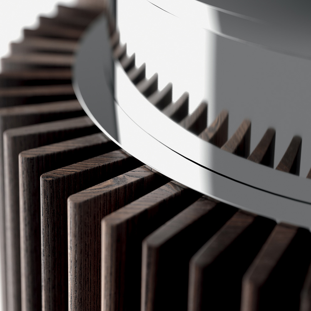 træ- og metallameller . Det stærke punkt ved dens æstetik er den arkitektoniske base, der er karakteriseret ved lameller, der hviler på en