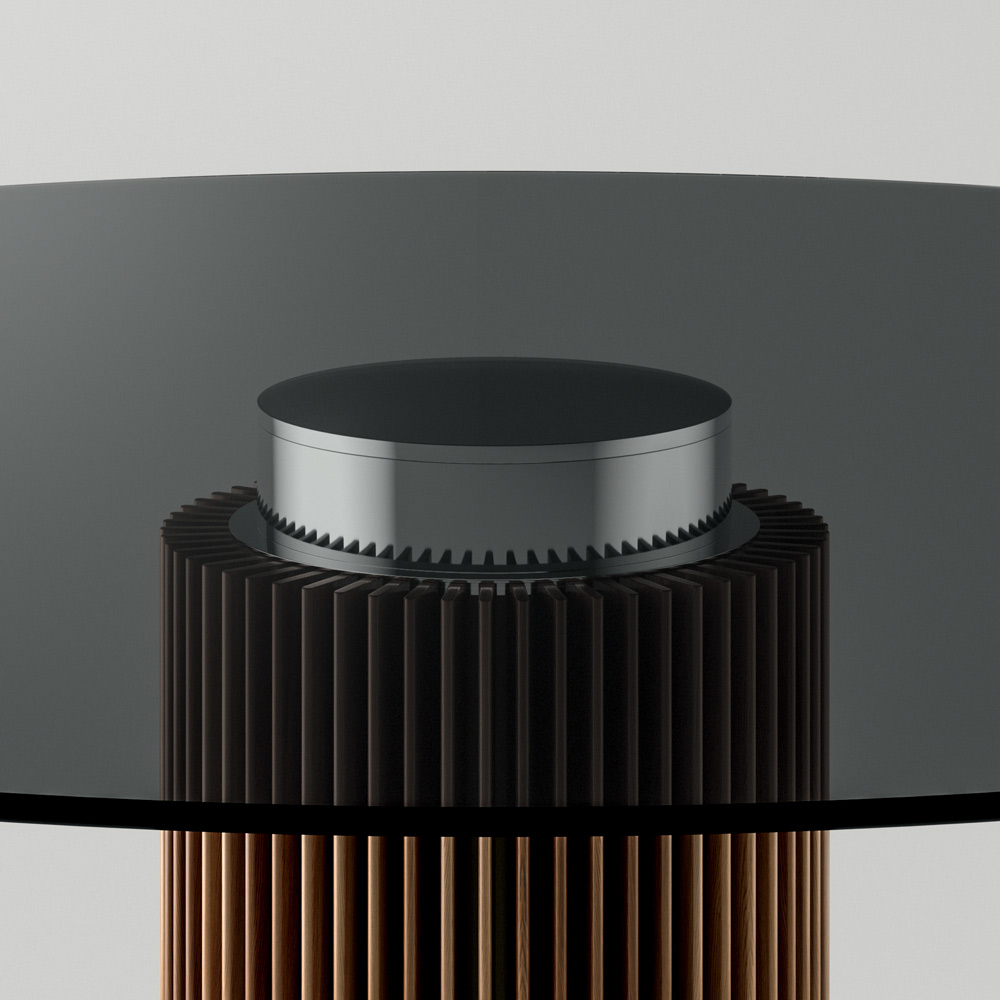 elegant og skulpturel struktur , dette møbel kommer fra kombinationen af materialer af forskellig natur sammen med passionen for at arbejde glas, og dermed formår at definere en repræsentation af styrke og karakter gennem forskellige former og tykkelser.