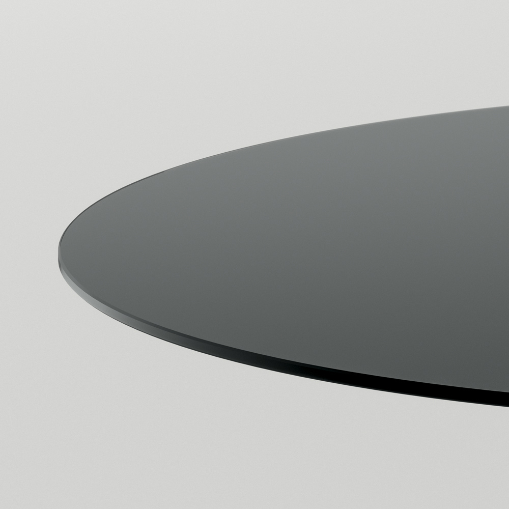 Rundt spisebord med plade af røget glas og træbund Made in Italy.