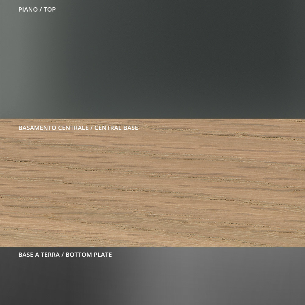 metalbund med en skinnende gunmetal grå finish. Toppen med sin afrundede kant giver blødhed til formerne, mens metalelementerne fuldender bordets design og beriger det med