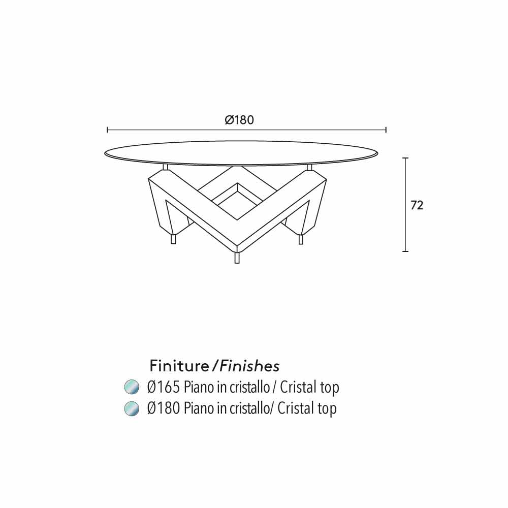 Rundt spisebord i træ med Bao krystalplade, moderne design, fremstillet i Italien