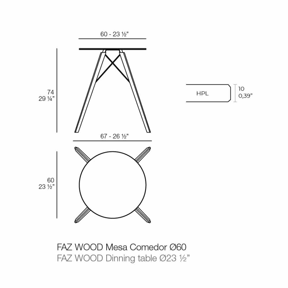 Faktisk skaber kombinationen af benene med HPL-laminatpladen et afslappet chic design med en avantgarde og innovativ ånd, ideel til indendørs områder som lounger, spisestuer, barer osv.