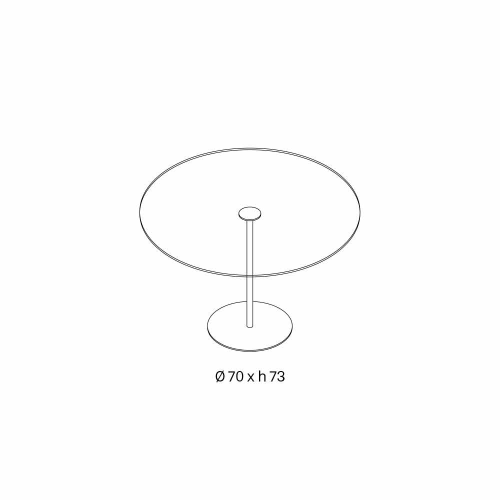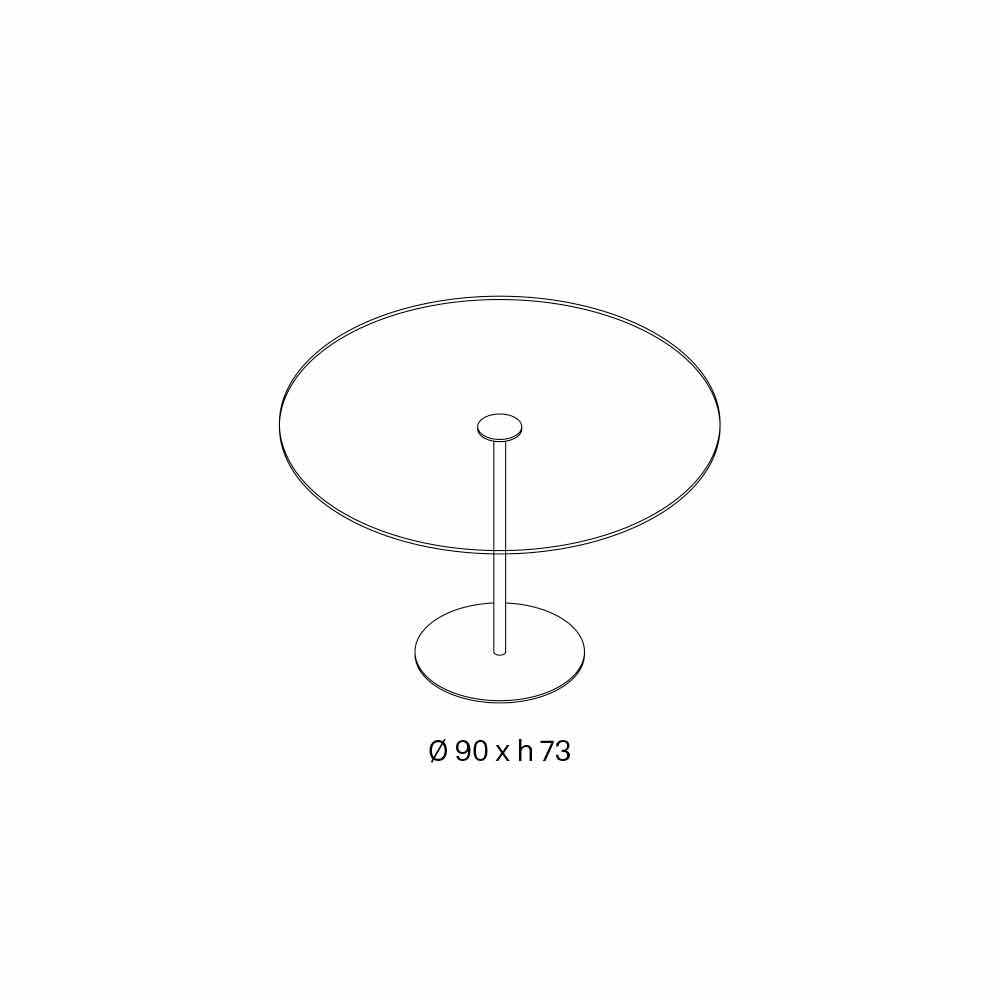 Rundt luksusbord med ekstra klar glasplade og forkromet metalbund, fremstillet i Italien.