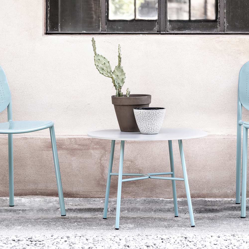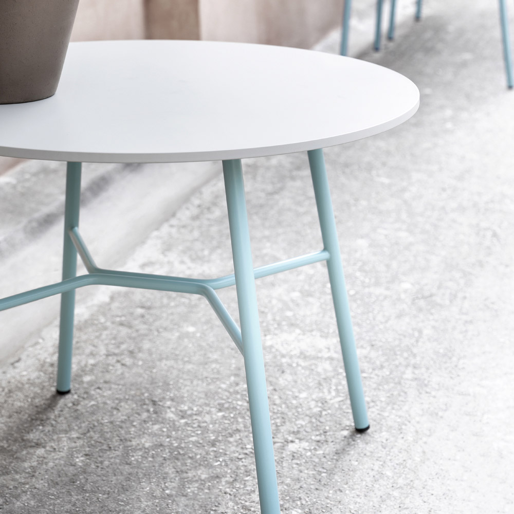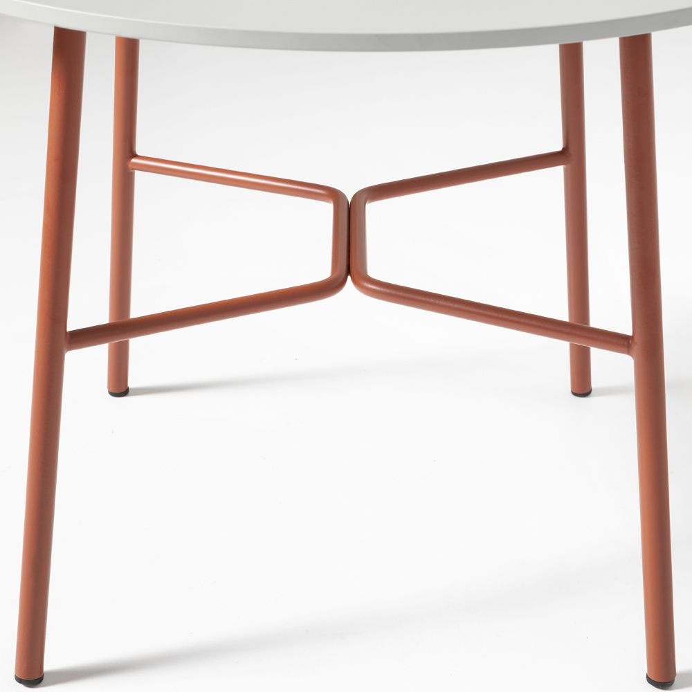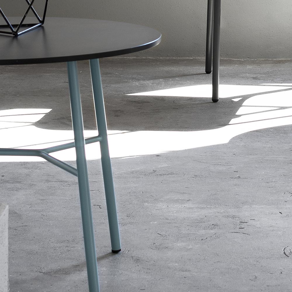 Rundt udendørs sofabord i HPL og malet metal Fremstillet i Italien.