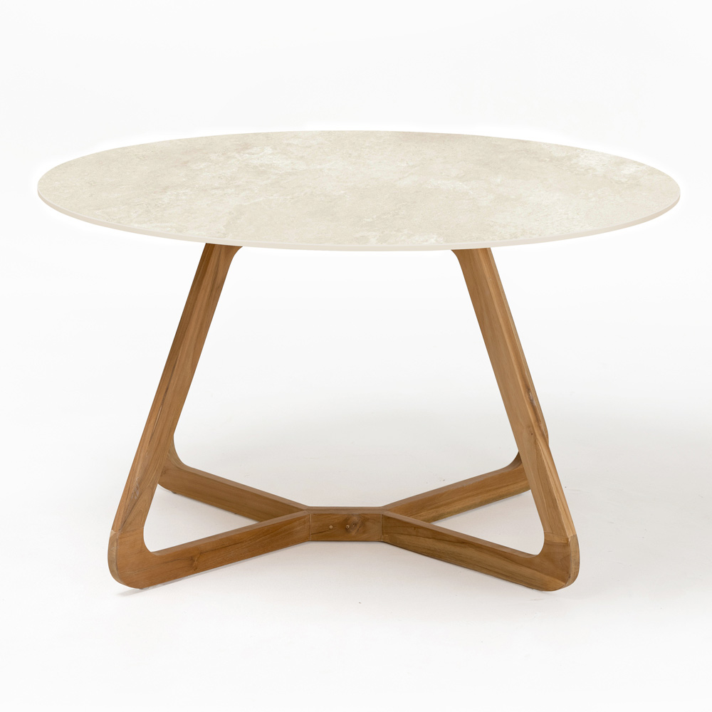 Træbasen tilbyder en organisk kontrast, der fremhæver den keramiske bordplades naturlige skønhed, mens dens robusthed sikrer stabilitet og holdbarhed . Denne blanding af materialer er ikke kun æstetisk tiltalende, men også designet til at modstå elementerne, hvilket gør bordet ideelt til enhver udendørs brug, fra middage under stjernerne til afslappende eftermiddage.