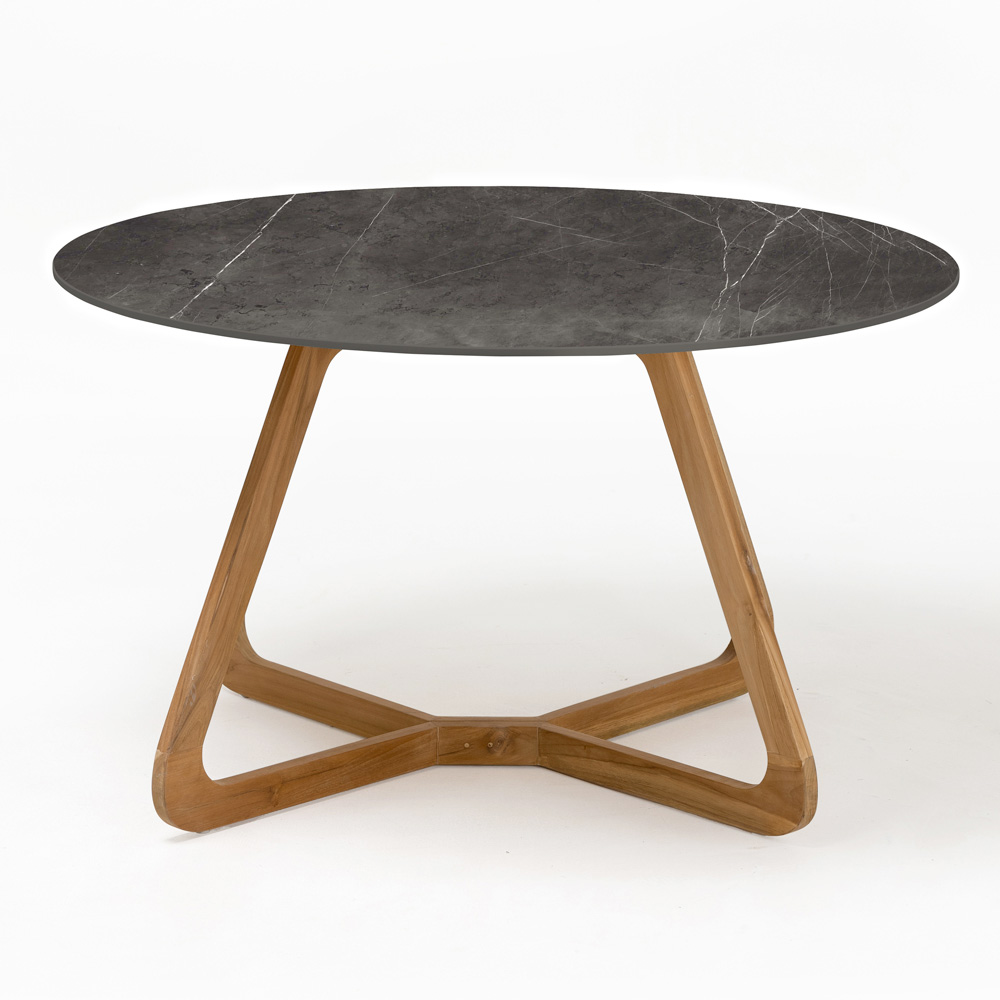 Rundt havebord i træ og keramik, fremstillet i Italien