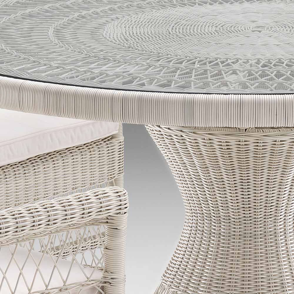 Den vævede stil er raffineret og delikat, og sammen med den meget høje kvalitet af materialerne og de afgørende former gør det dette bord perfekt til interiør- og eksteriørindretning, både til private og kontraktmiljøer som terrasser, verandaer, haver, men de finder også en perfekt placering ved poolen.