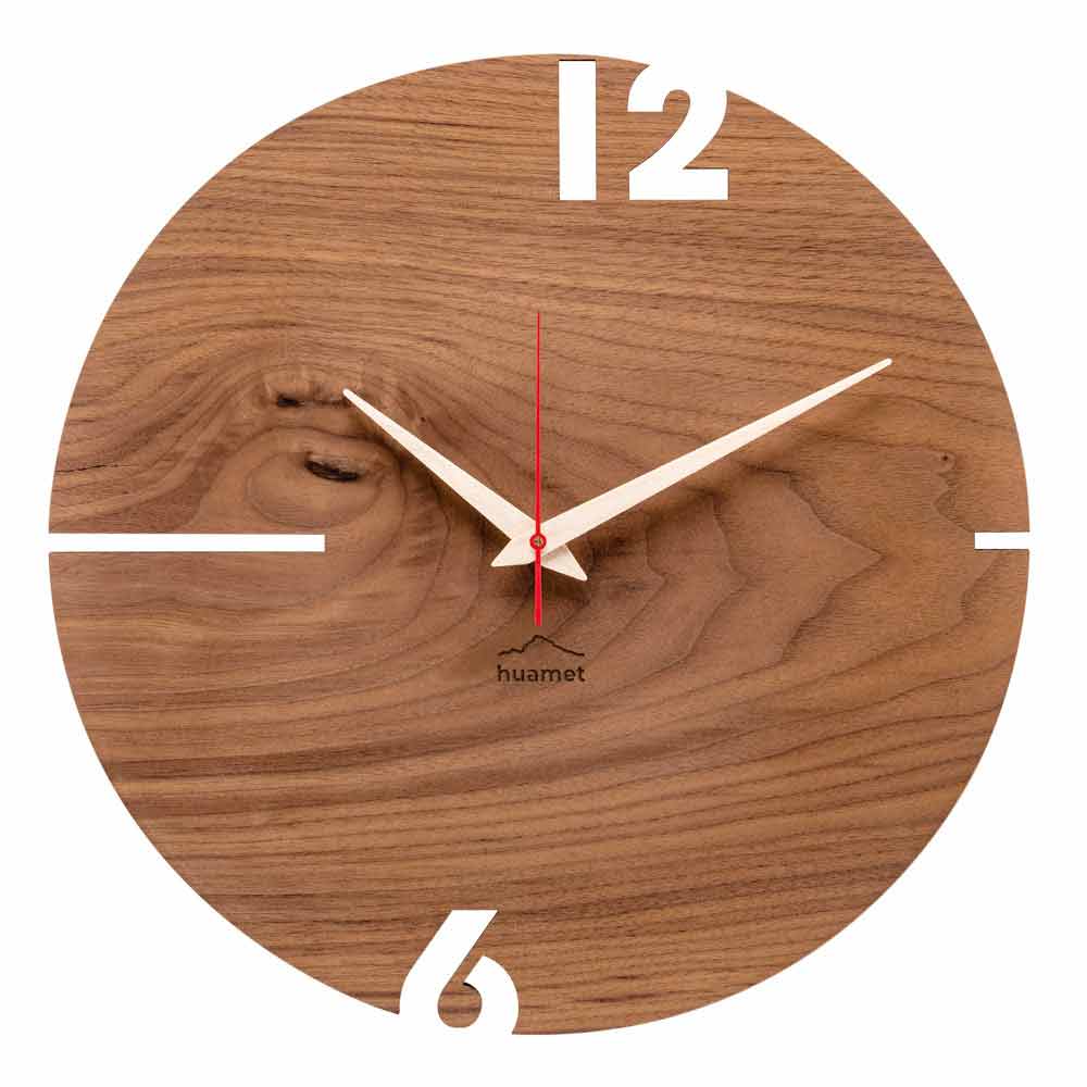 Moderne design rundt vægur i eg, fyr eller valnød; håndlavet i Italien.