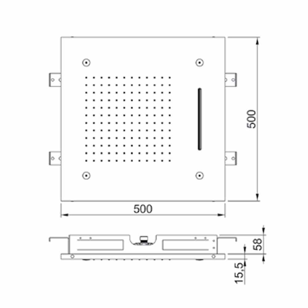 Egenskaber:- firkantet brusehoved i anti-kalksten rustfrit stål