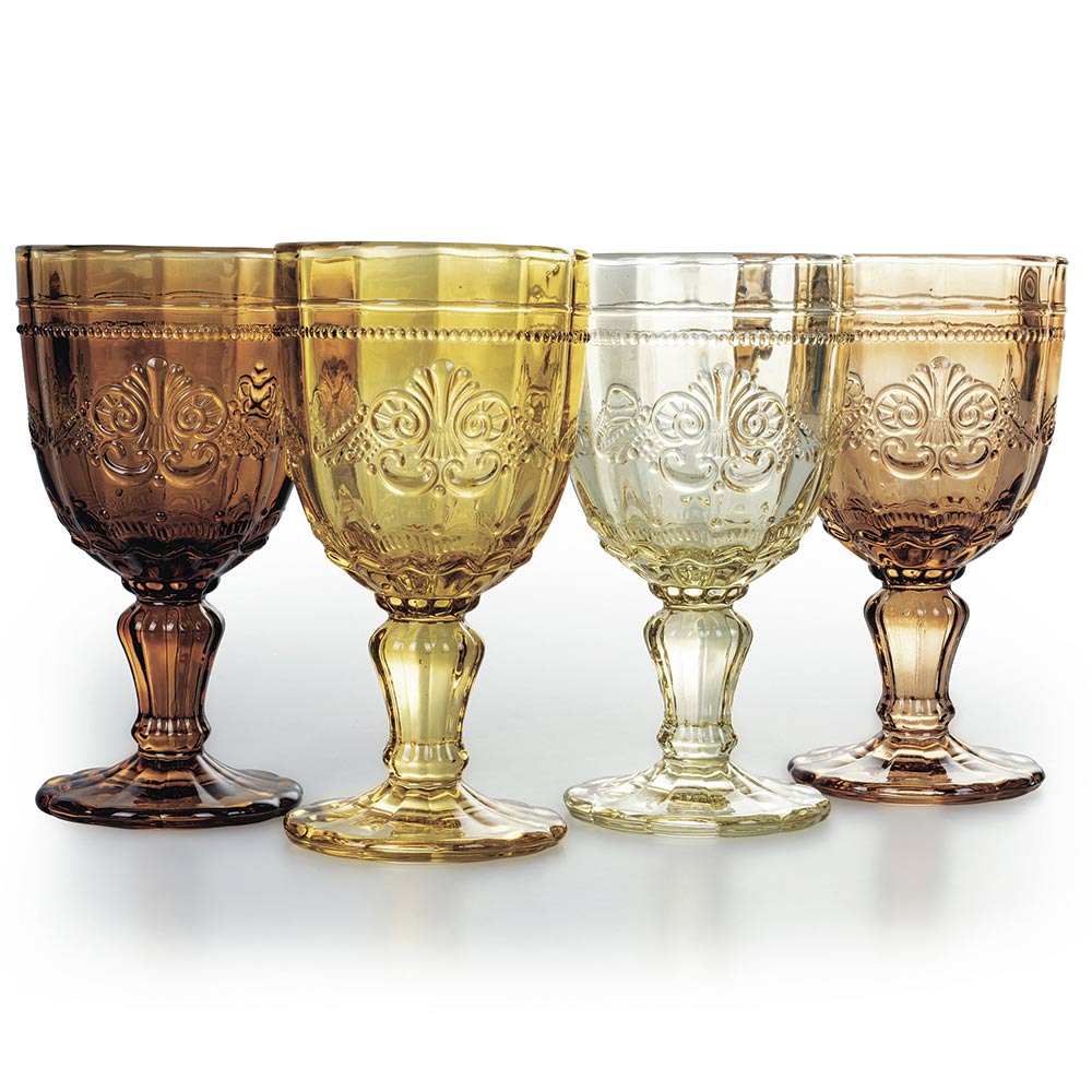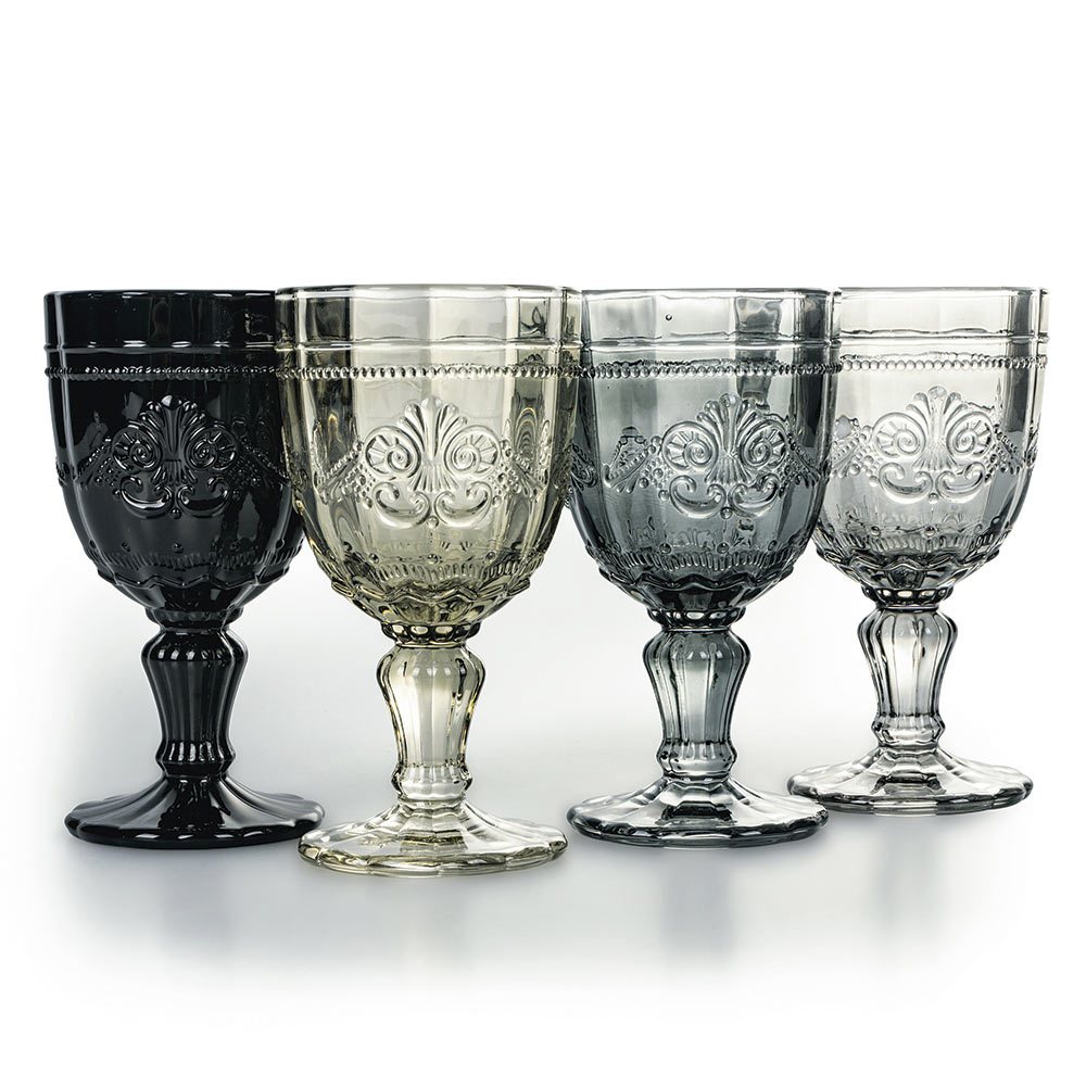 Oplev den raffinerede skønhed ved dette sæt med 12 glas , hver et mesterværk af design og farver . Disse briller er en dans af drømmende nuancer. Hvert stykke har et fint detaljeret blomsterornament , der fremkalder elegancen af en skjult have. Den bearbejdede kant tilføjer et ekstra niveau af detaljer, hvilket gør dem perfekte til særlige lejligheder eller til at tilføje et strejf af hverdagsluksus . Disse glas er ikke bare beholdere til dine yndlingsdrinks, men ægte kunstværker til dit bord.