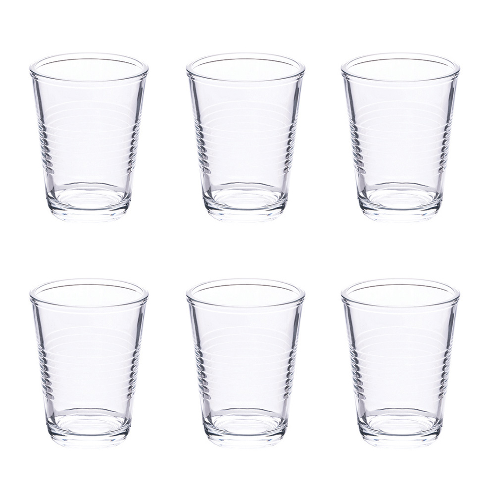 12 glas af gennemsigtigt glas med bearbejdet overflade.