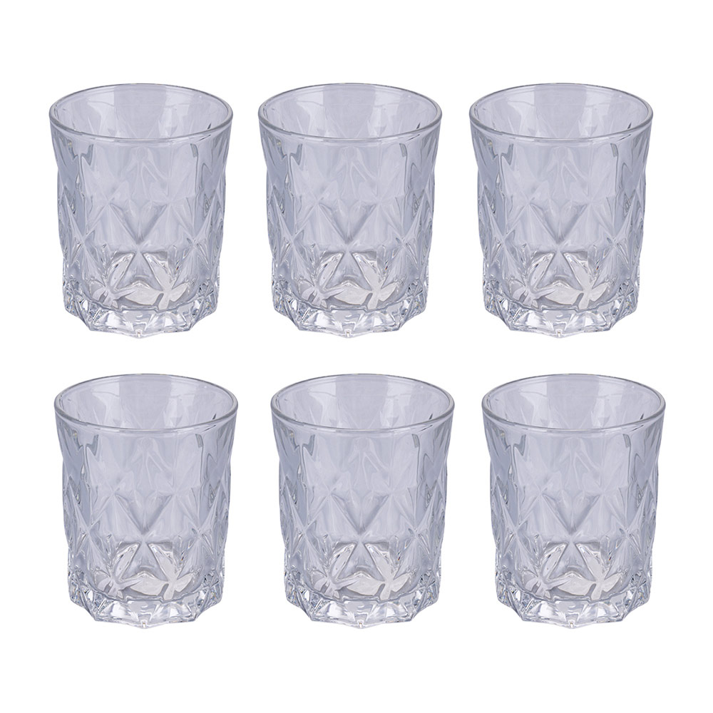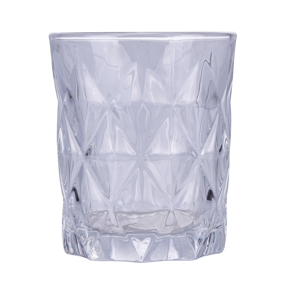 12 glas af gennemsigtigt glas med bearbejdet overflade.