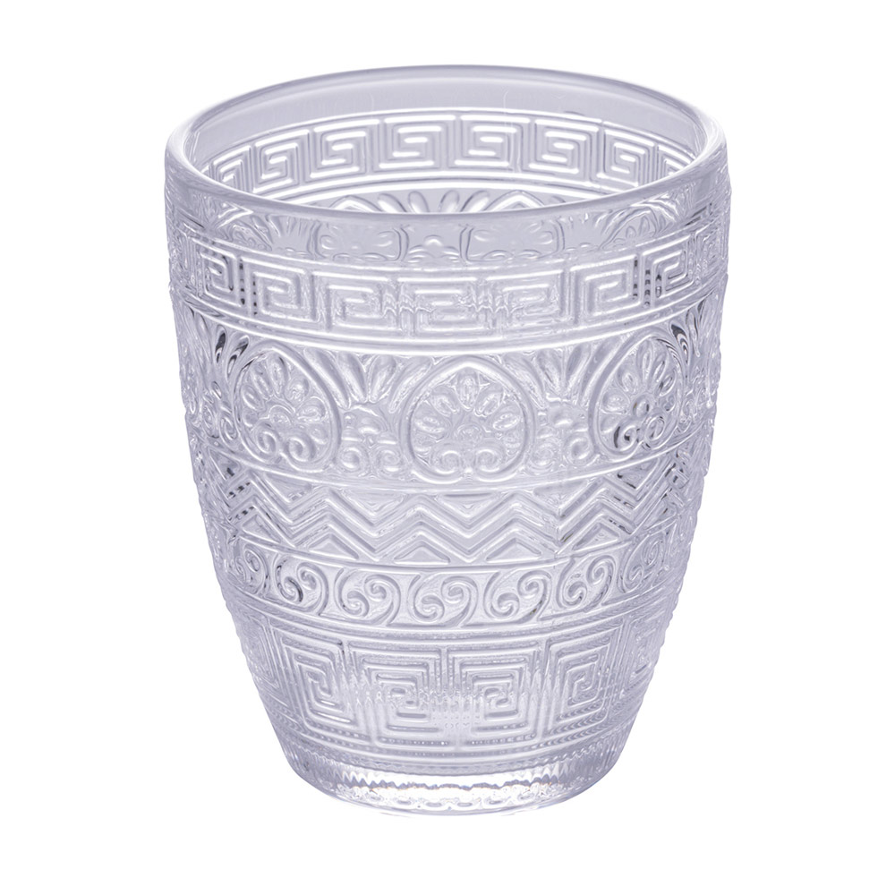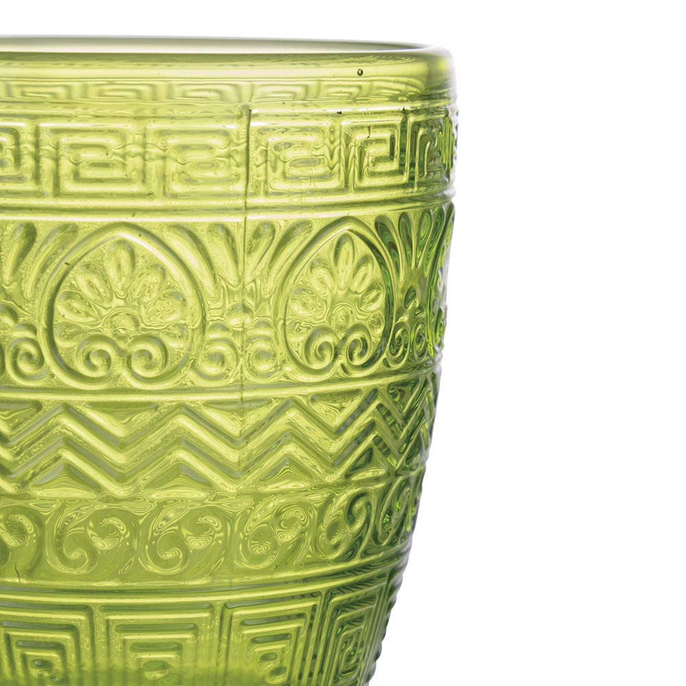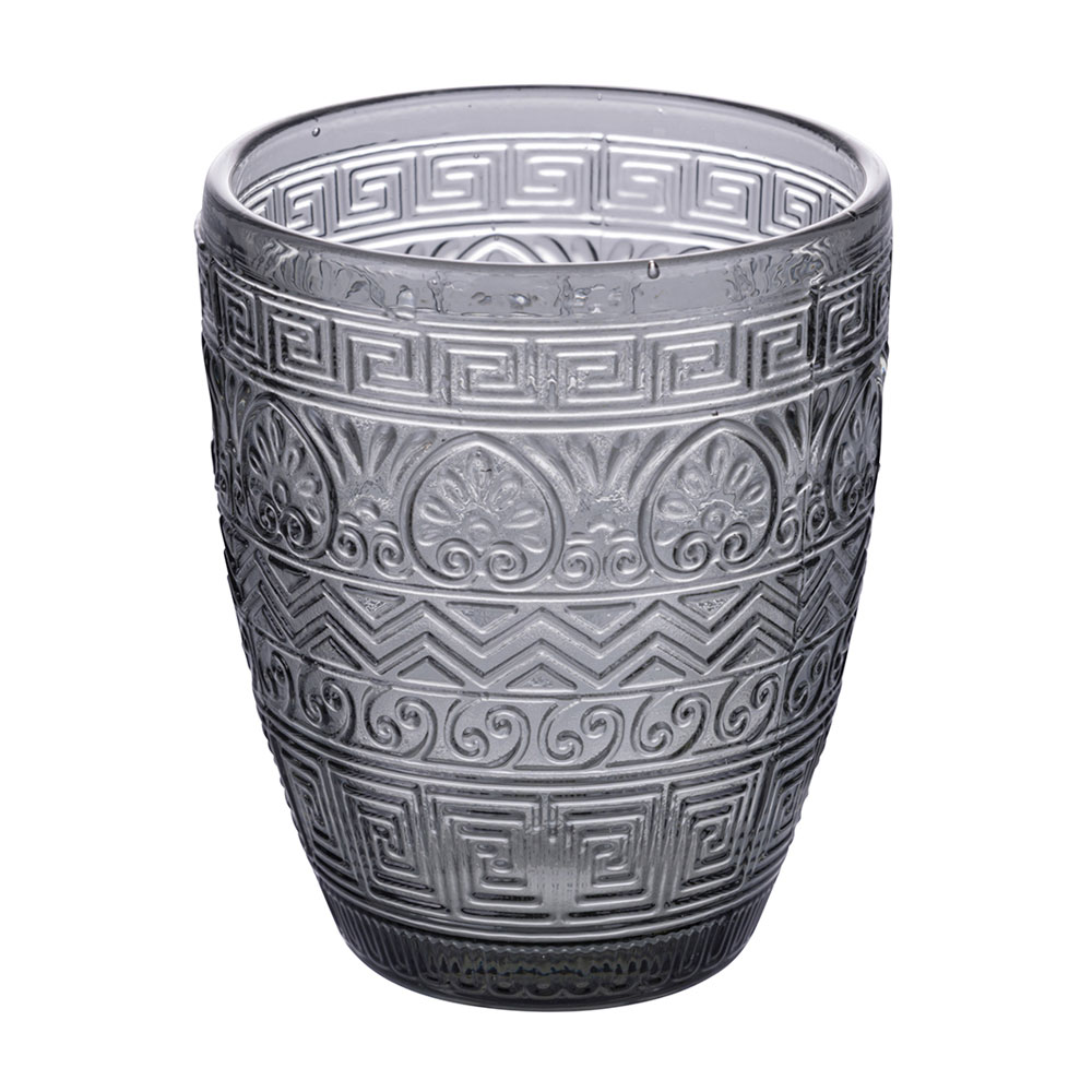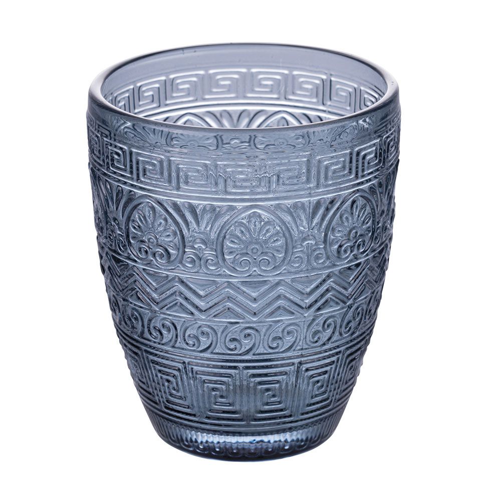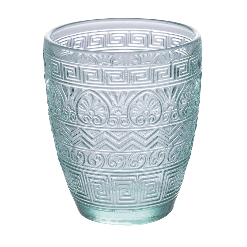 Dette sæt med 12 glas er en sand ode til håndværk og farver. De er indgraveret med et gammelt græsk motiv og tilbyder et dyk ind i historien med et moderne twist. Udvalget af farver, fra den nedgående sols rav til det grønne i den frodige natur , der passerer gennem stenens sofistikerede grå og havets dybe blå , inviterer dig på en sanselig rejse gennem middelhavspaletten . Hvert glas er designet til ikke kun at være et objekt for æstetisk skønhed , men også for funktionel nydelse , perfekt til enhver lejlighed, fra hverdag til fest.