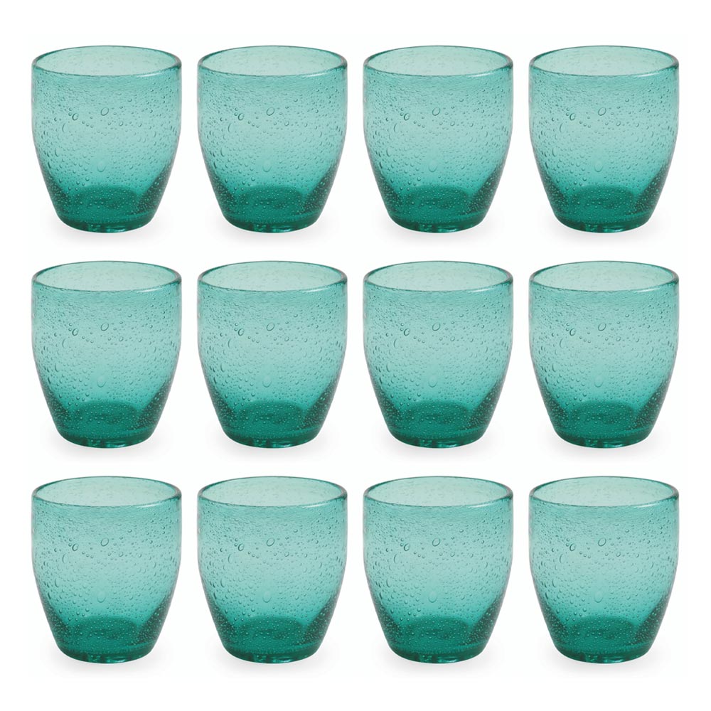 Smaragdgrøn blæst glas vandglas, sæt med 12 stk.