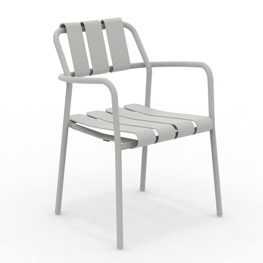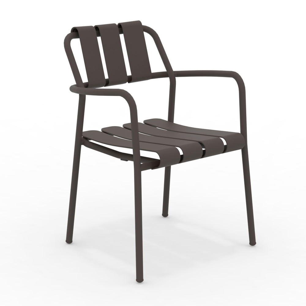 Den lette, men robuste struktur er designet til at tilbyde den bedste komfort, med et ergonomisk sæde og en formet ryglæn , der sikrer en behagelig og afslappende støtte. Aluminiumslamellerne giver et dynamisk og moderne look, mens den matte finish tilføjer et strejf af elegance og raffinement.