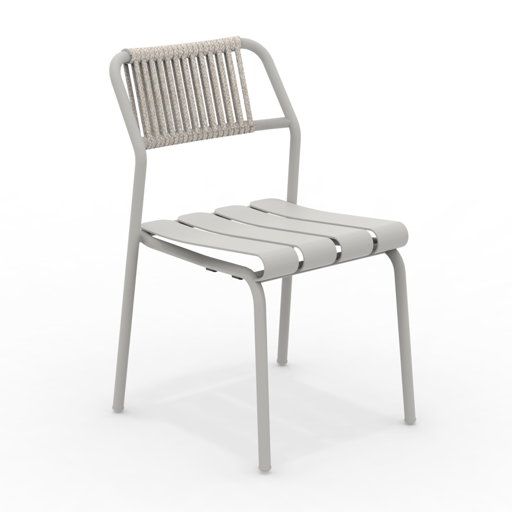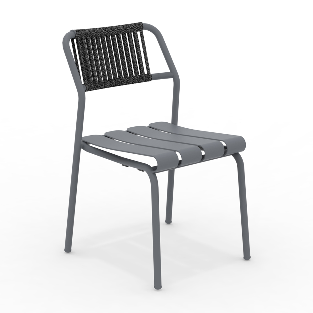 Den lette, men robuste struktur er designet til at tilbyde den bedste komfort, med et ergonomisk sæde og en formet ryglæn i reb , der sikrer en behagelig og afslappende støtte. Aluminiumslamellerne giver et dynamisk og moderne udseende, mens finishen tilføjer et strejf af elegance og raffinement.