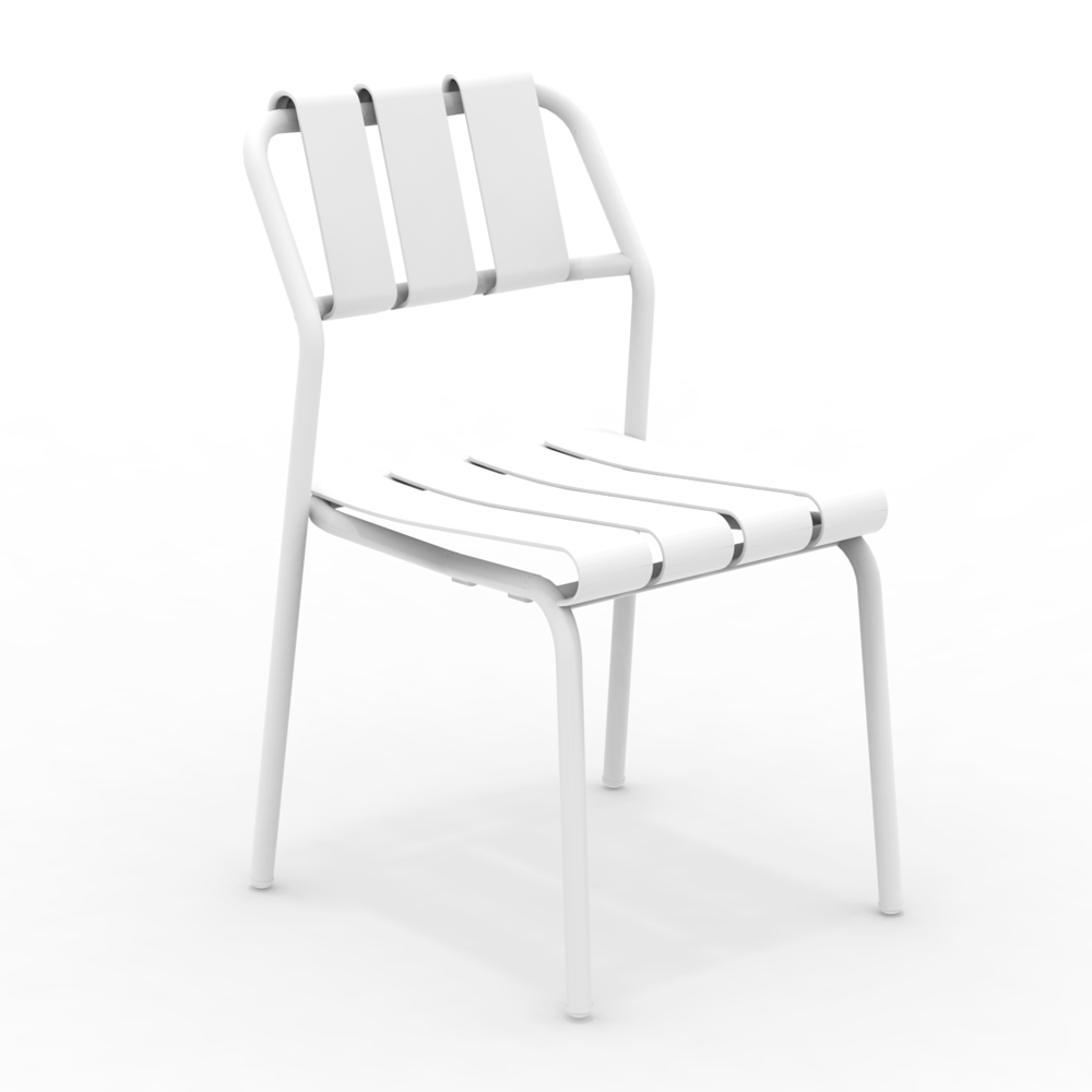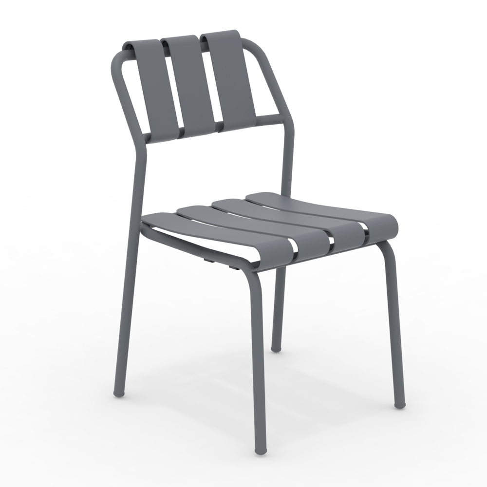 Den lette, men robuste struktur er designet til at tilbyde den bedste komfort, med et ergonomisk sæde og en formet ryglæn , der sikrer en behagelig og afslappende støtte. Aluminiumslamellerne giver et dynamisk og moderne look, mens den matte finish tilføjer et strejf af elegance og raffinement.