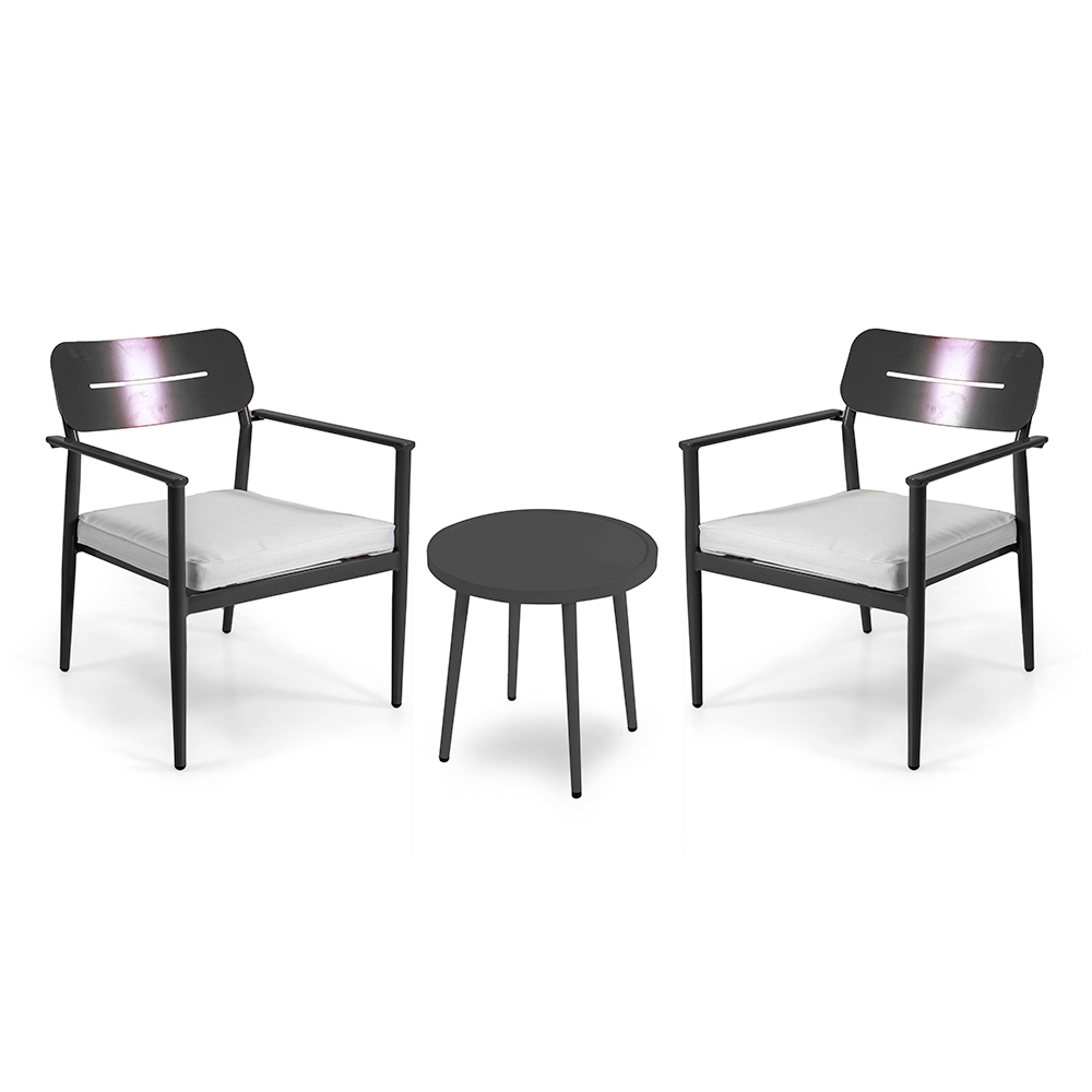 Sættets minimalistiske look og rene linjer er desuden særligt velegnet til moderne sammenhænge og passer perfekt ind i haver, terrasser eller altaner, hvor pladsen er trang, men hvor man ikke ønsker at give afkald på stil og komfort.