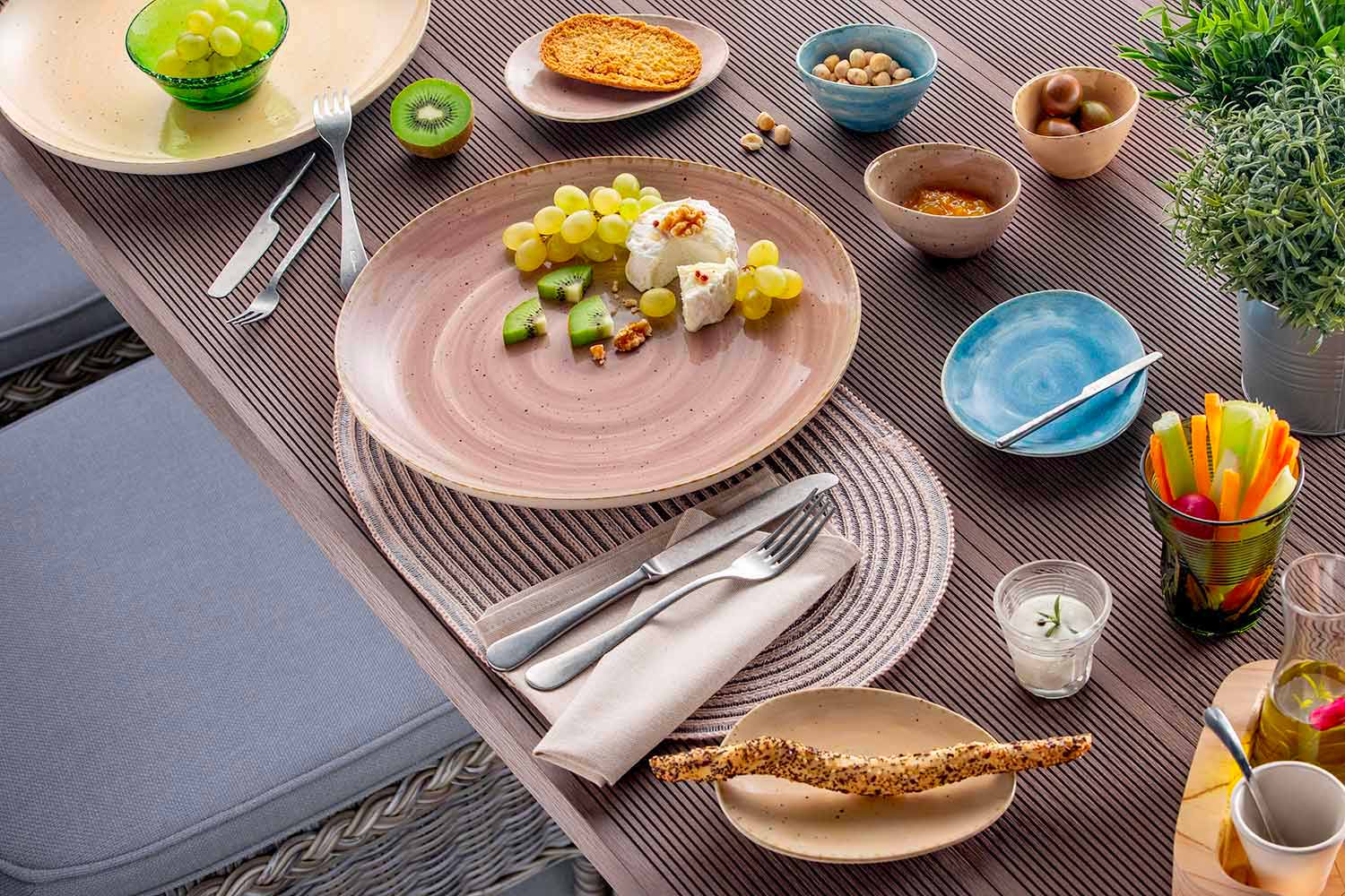 Middagservice med elegant og moderne design i farvet stentøj, 20 stk.