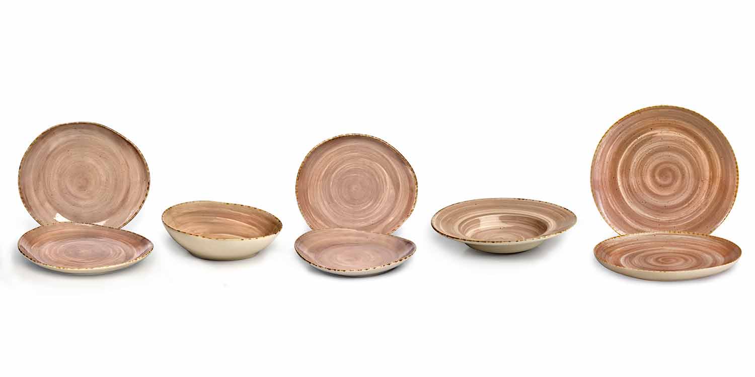 - Originalitet : de uregelmæssige former, dekorationer med upræcise børstestræk og med en plettet effekt færdig og malet for hånd og den antikke kant, fremhæver den rustikke og jordagtige stil i samlingen. Hver forskel mellem et stykke og et andet skal betragtes som en yderligere egenskab ved værdi og personlighed, hvilket gør hvert stykke unikt.