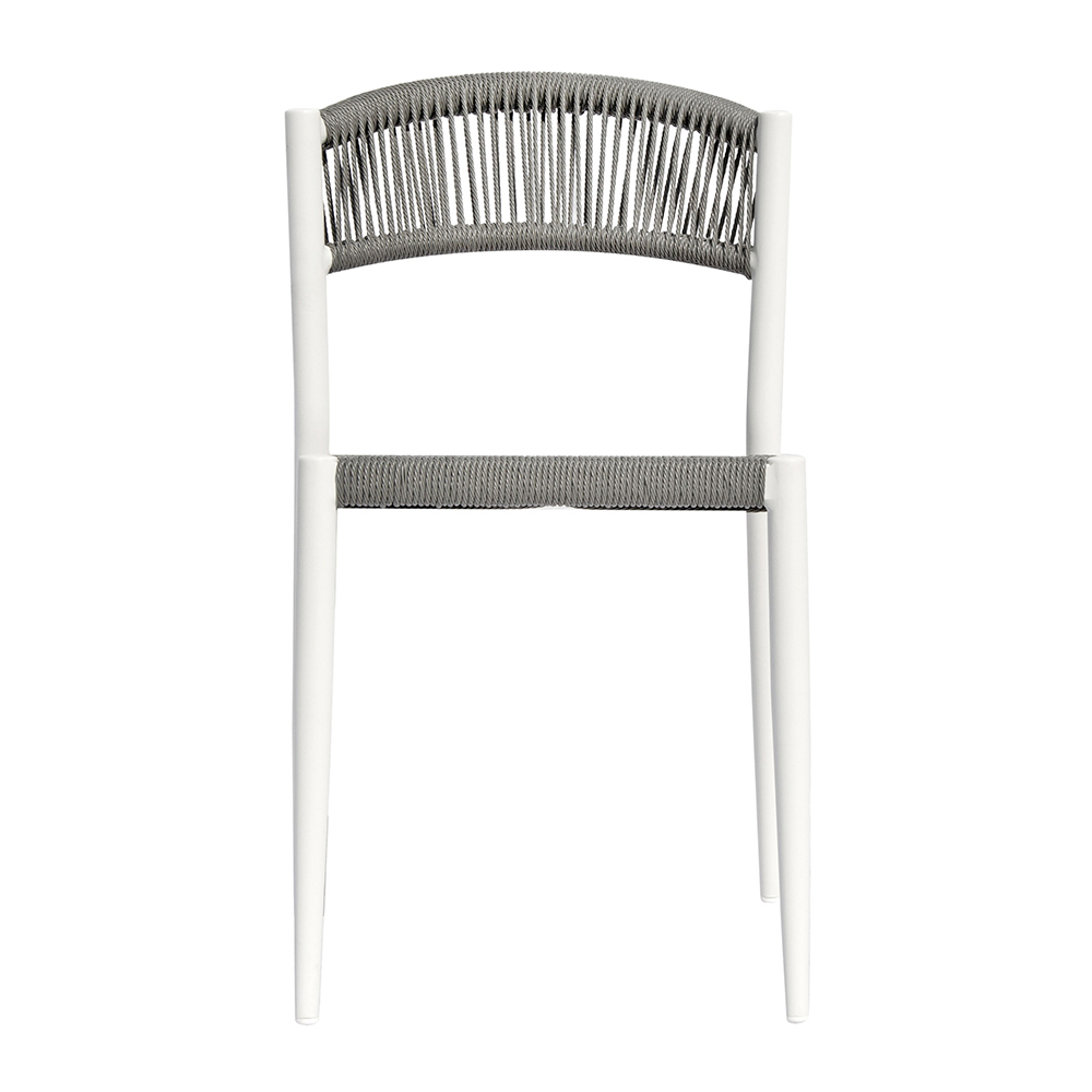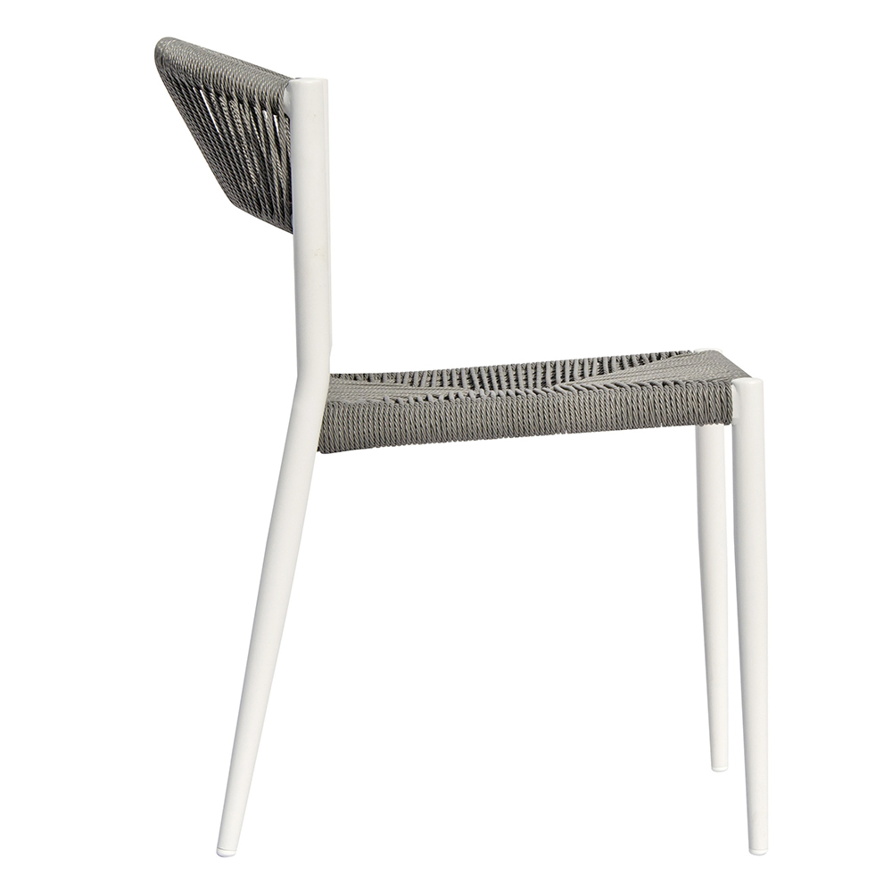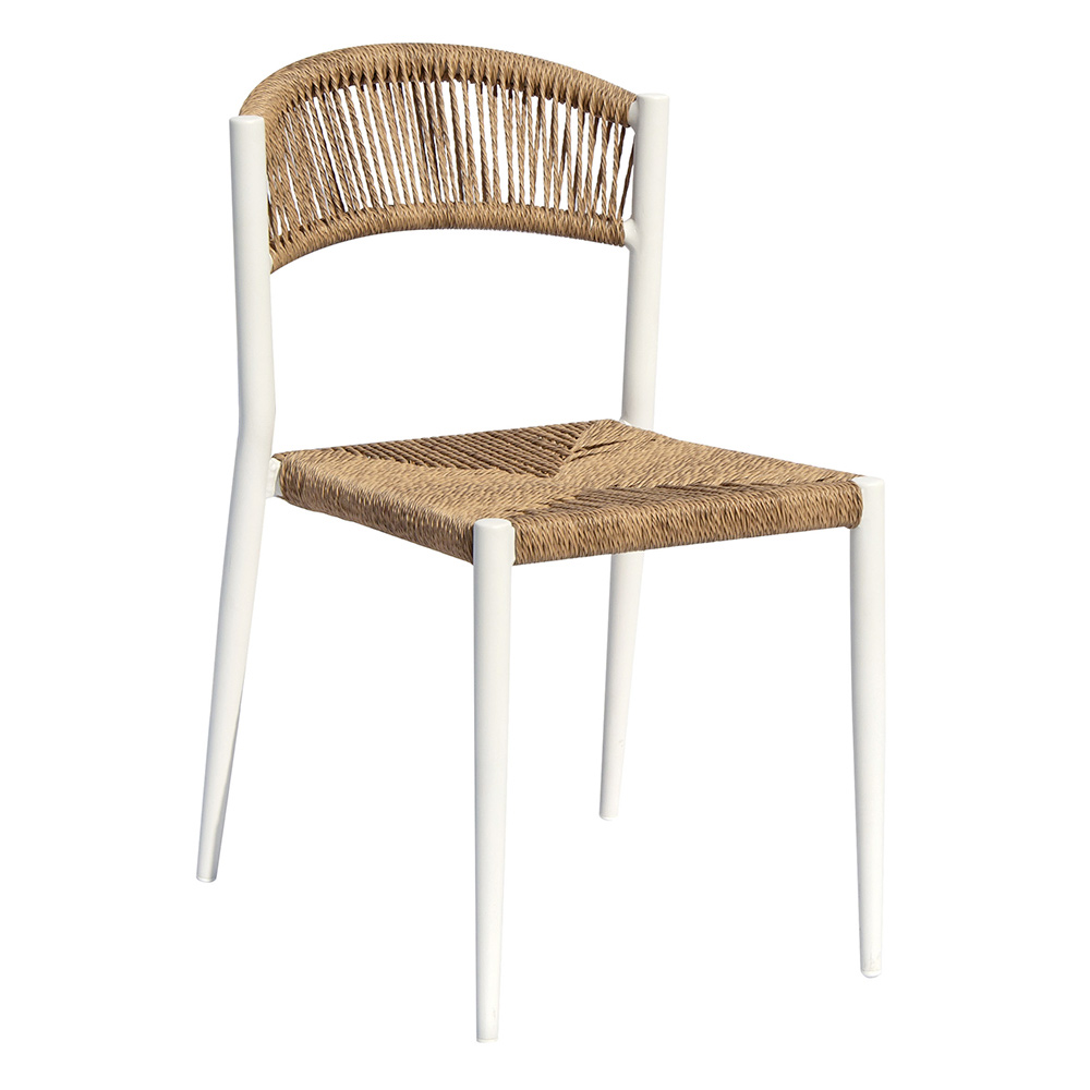 Det 5 mm vridede flettede sæde og ryglæn giver et naturligt og raffineret præg og skaber en behagelig kontrast til metalstellet. Det vævede materiale tilbyder komfort og åndbarhed, hvilket gør denne stol perfekt til afslapning udendørs på varmere dage.