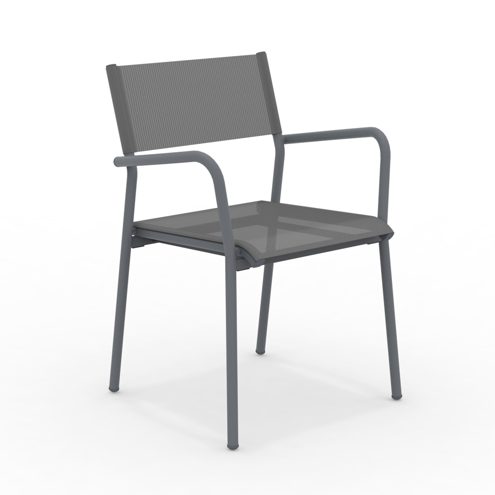 Batyline-sædet og ryglænet tilbyder optimal komfort takket være deres åndbarhed og modstandsdygtighed over for atmosfæriske påvirkninger, hvilket sikrer langvarig brug uden vedligeholdelse. De integrerede armlæn giver et strejf af komfort, hvilket gør denne stol perfekt til lange afslapningsstunder i det fri.