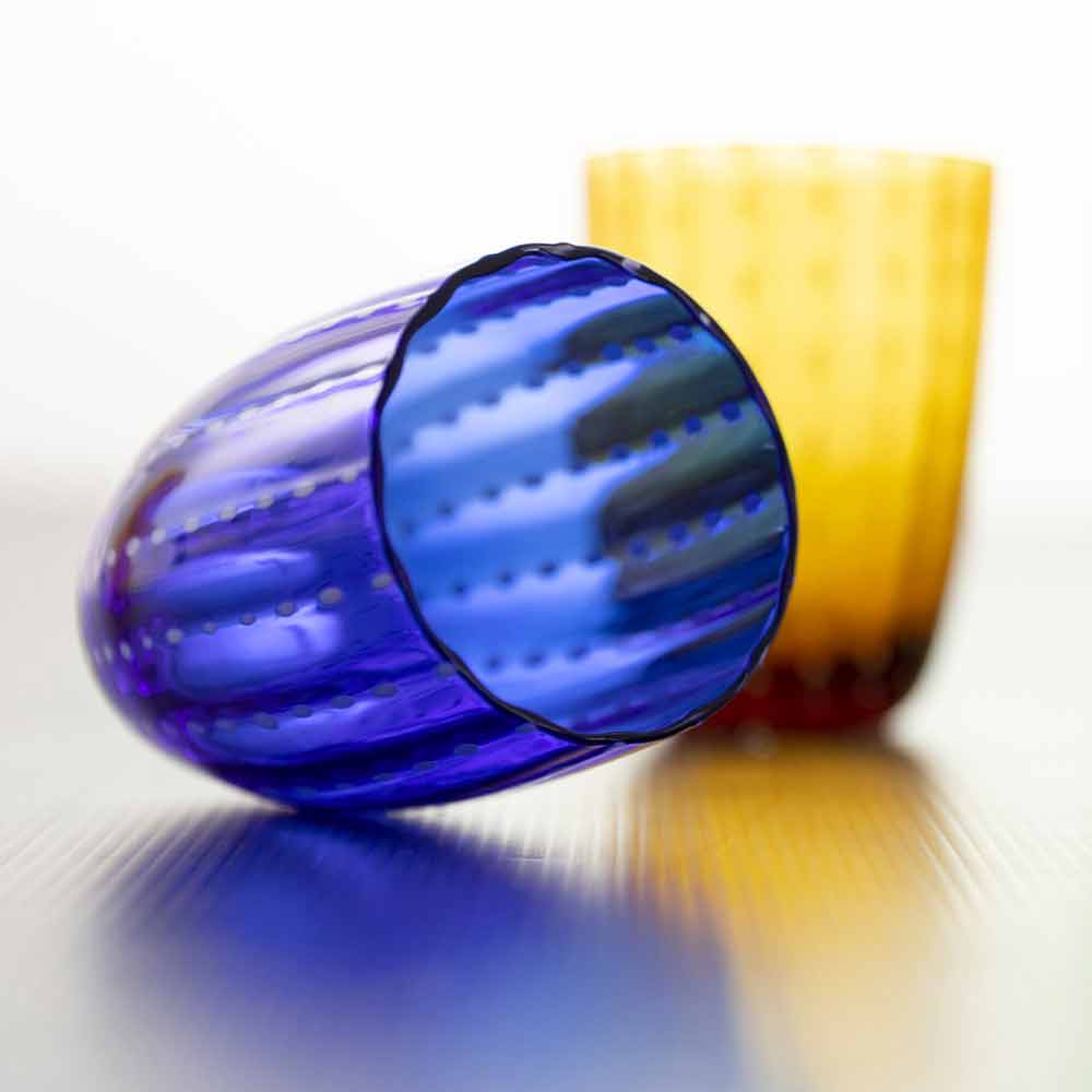 styrken i materialet og frem for alt gennem valget af farver, der bringes til bordet, forbedret af den