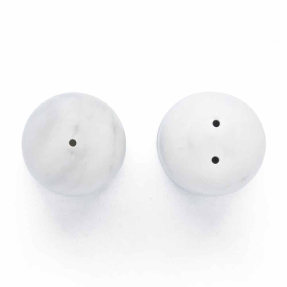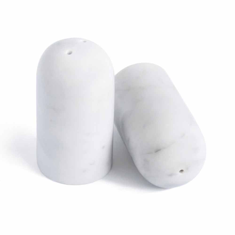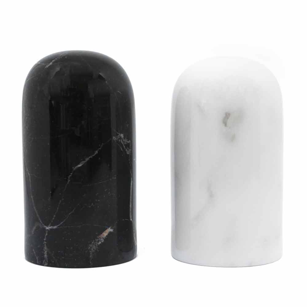 Køkkenbeholdere til salt og peber i hvid Carrara marmor og sort Marquinia Lavet i Italien.