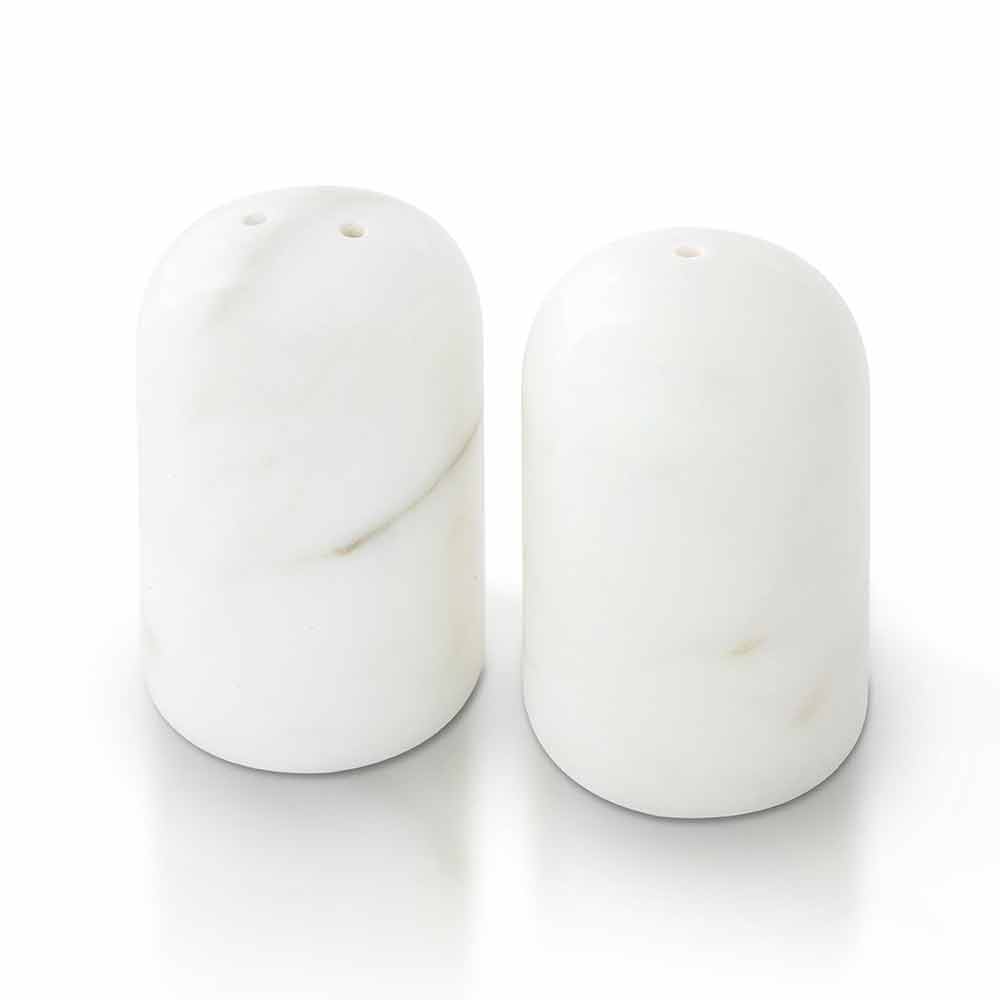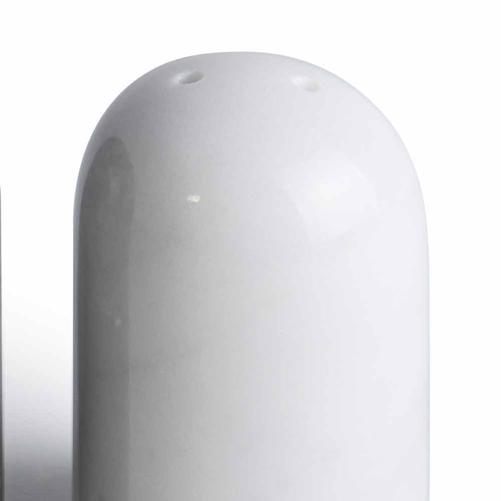 Disse køkkenbeholdere til salt og peber er kendetegnet ved brugen af hvid Carrara-marmor og sort Marquinia- marmor og skal betragtes som unikke stykker, da hver brugt marmorblok adskiller sig fra de andre i vener og nuancer.