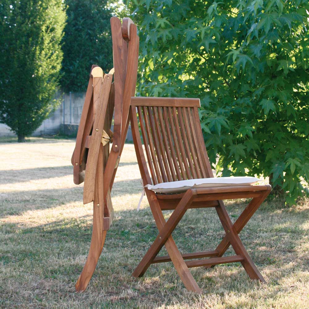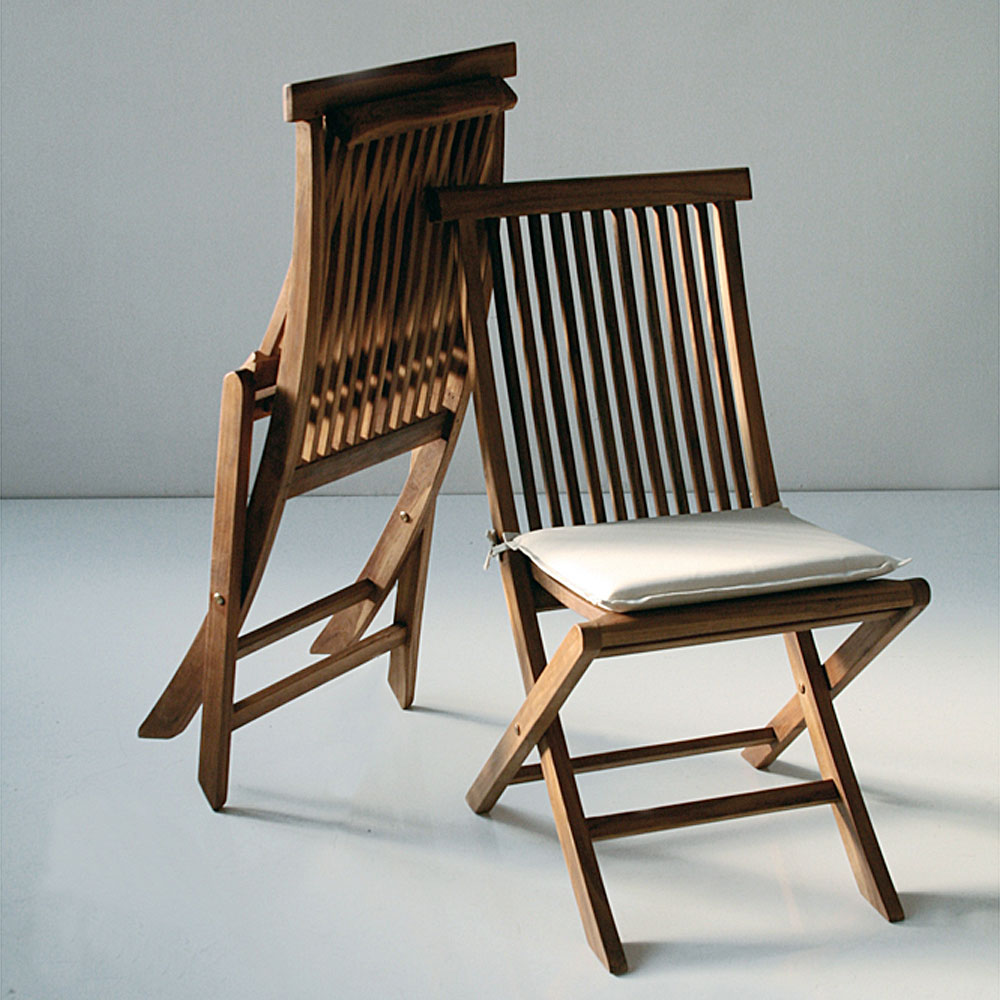 . Klapstole til udendørs brug, med vandafvisende cremefarvet hynde.