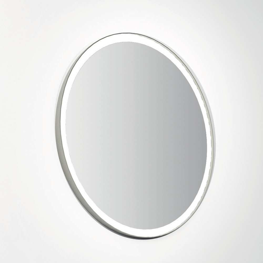 Kompositionen suppleres med det runde spejl med en mat sortlakeret metalramme og praktisk