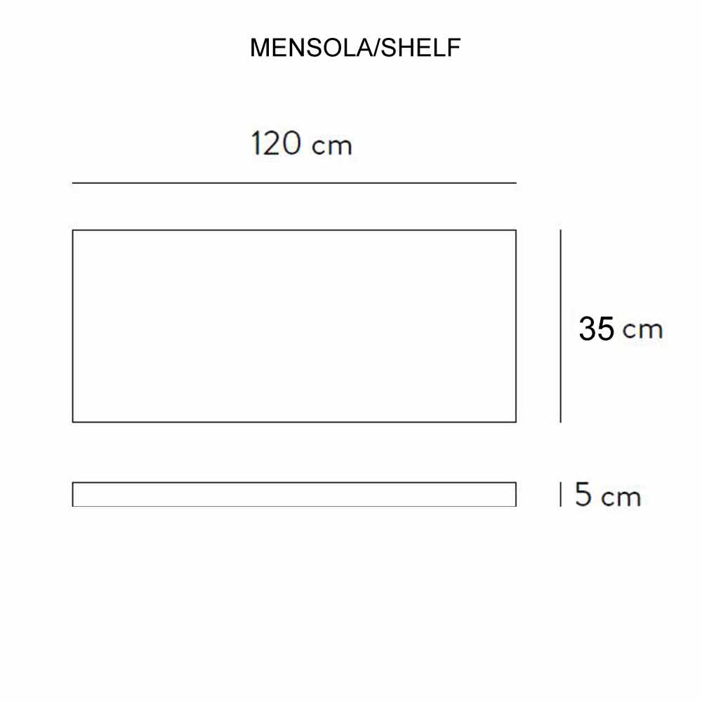 - ophængt hylde: B 120 x D 35 x H 5 cm