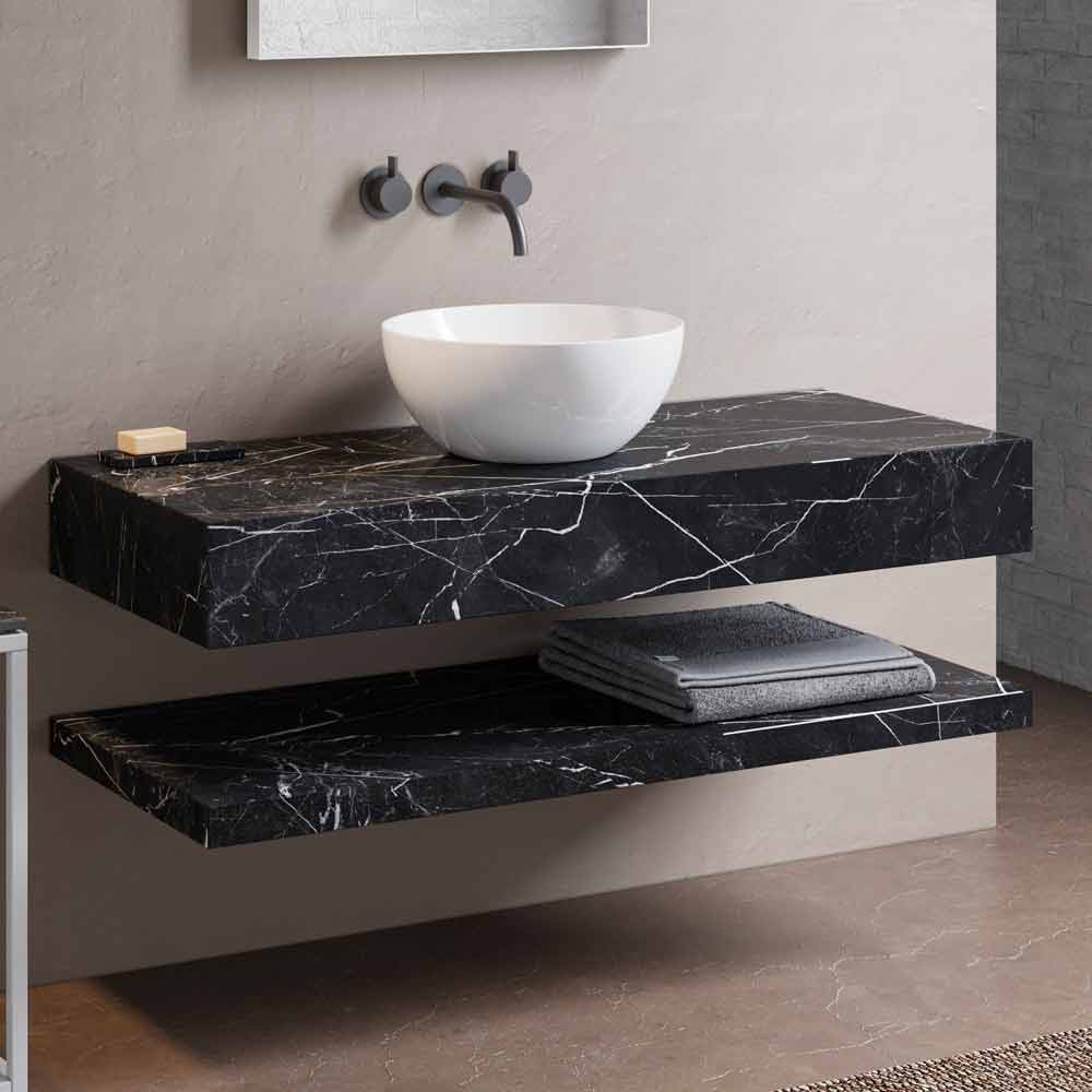 Badeværelse møbler sammensætning i porcelæn stentøj med blank hvid håndvask, luksus vare lavet i Italien.