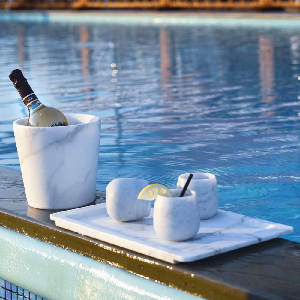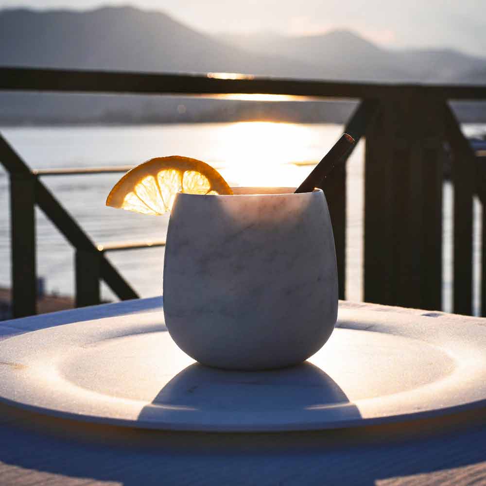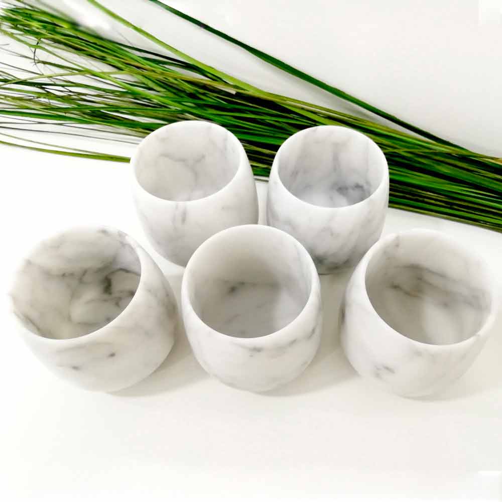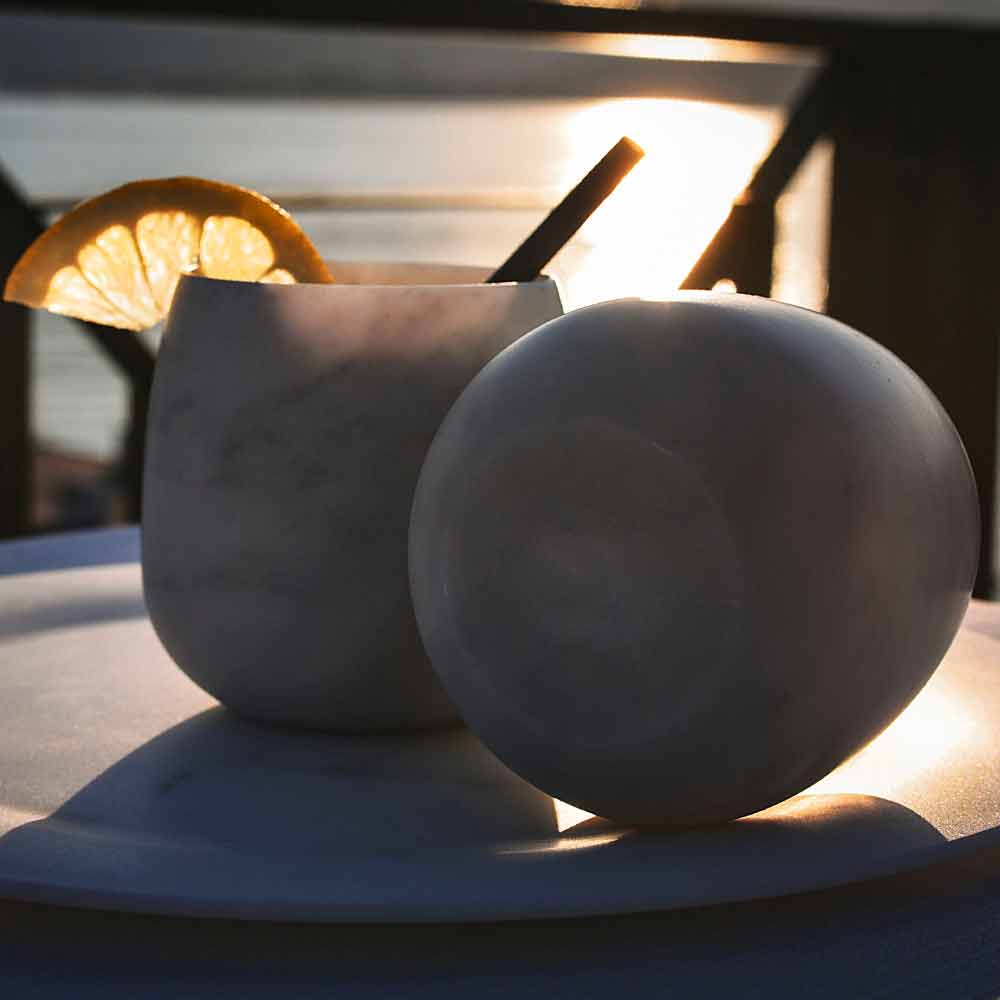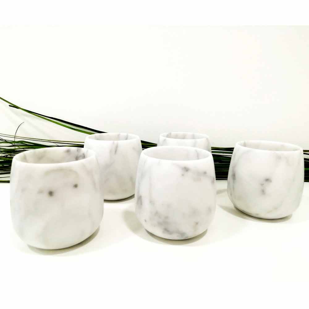 NB : På grund af marmorens karakteristiske porøsitet anbefales det ikke at hælde farvede drikkevarer i dem for bedst at bevare marmorens naturlige hvide skygge.