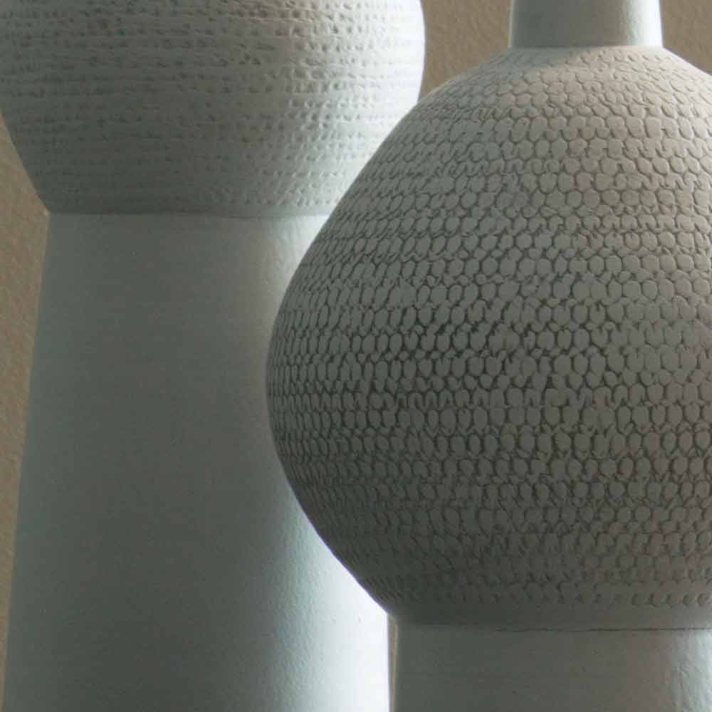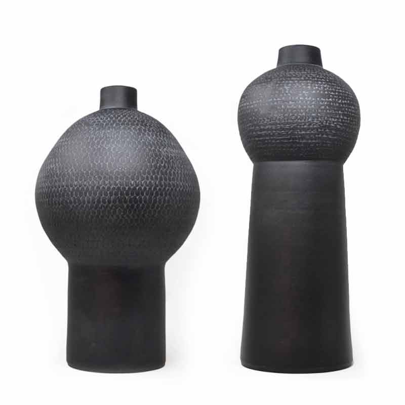 Par dekorative vaser i forskellige størrelser lavet af keramik.