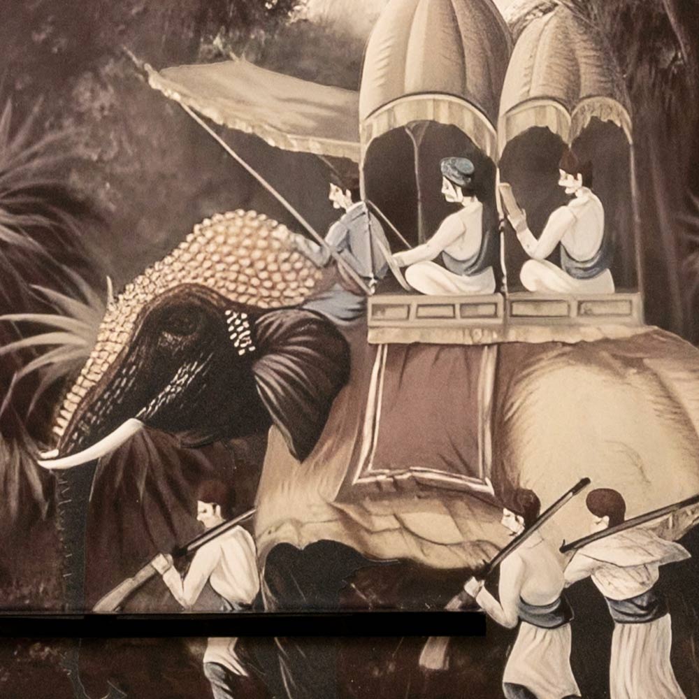 Med dette maleri ønsker vi at give rummet en eksotisk og tropisk atmosfære takket være printet af en elefant med baldakin og den omkringliggende skov, som gør kompositionen perfekt til at fuldende indretningen af ethvert rum. Det blev udelukkende lavet i Italien med udvælgelsen af de bedste materialer og med omhu og opmærksomhed i hver eneste produktionsproces.