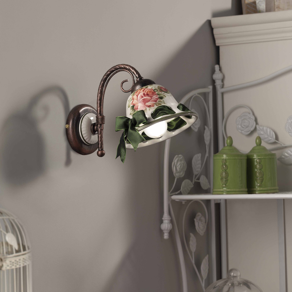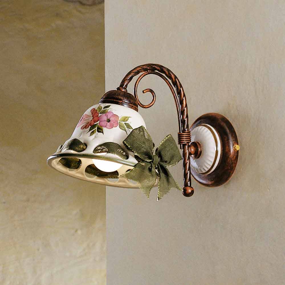 Rustikt dekoreret keramisk væglampe fra Ferroluce Napoli