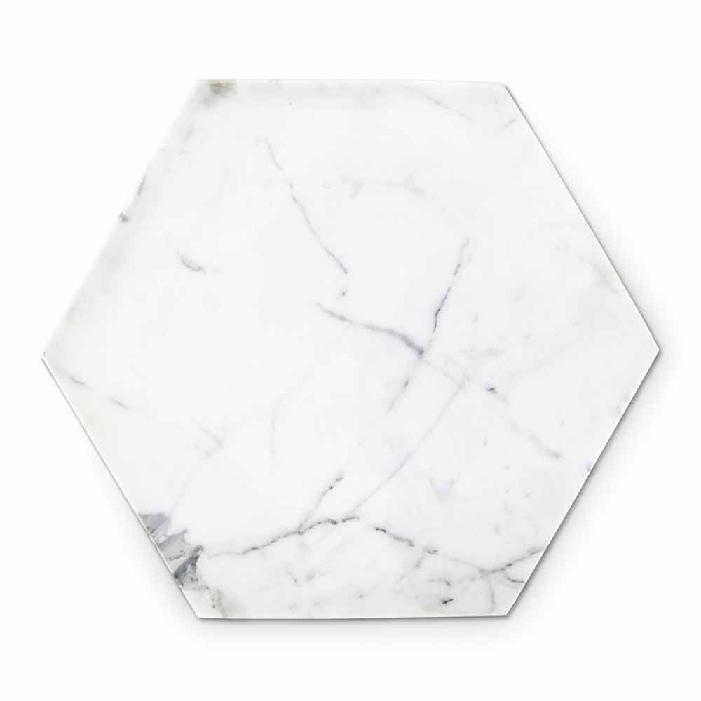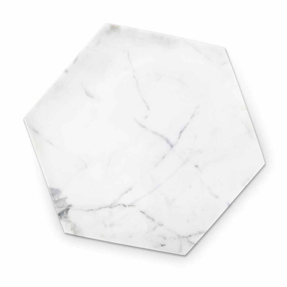 Sekskantet designplade i hvid Carrara marmor Fremstillet i Italien.