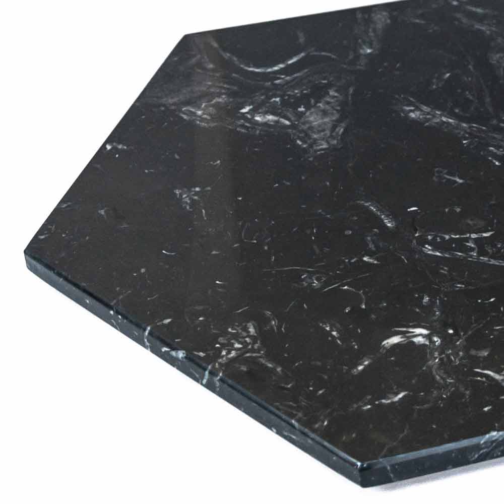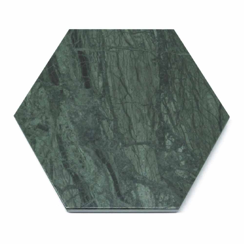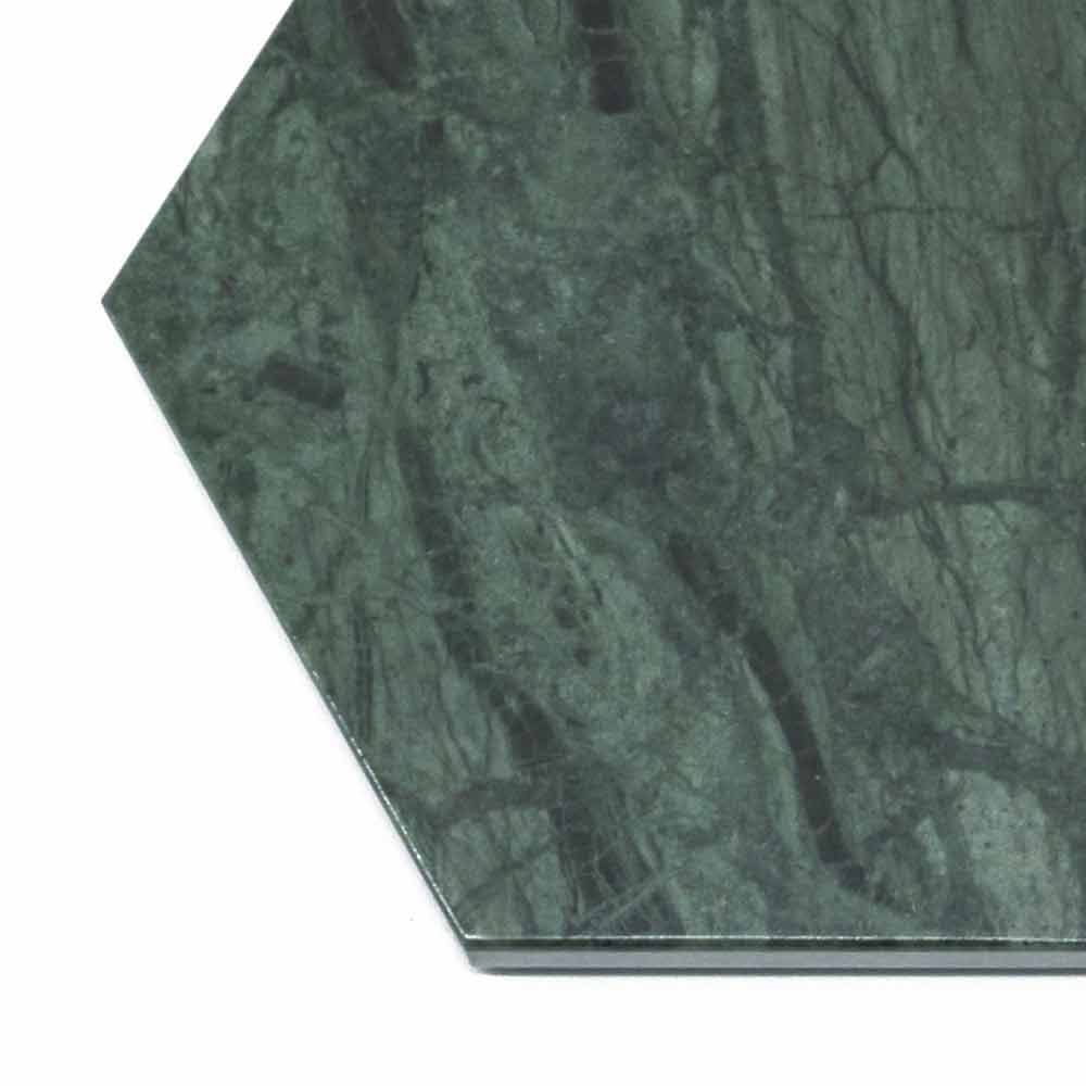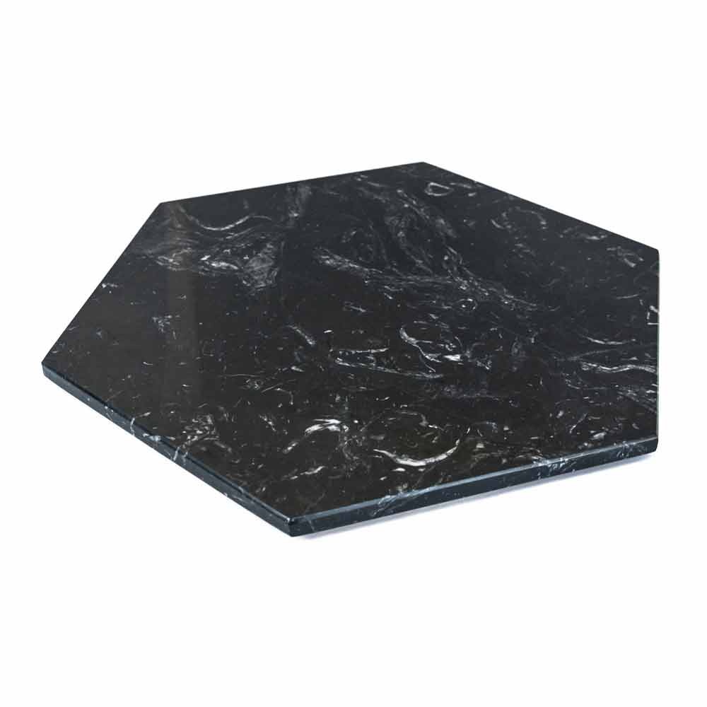 Sekskantet serveringsplade i sort Marquinia eller Guatemala grøn marmor med kork, 2 stykker fremstillet i Italien.