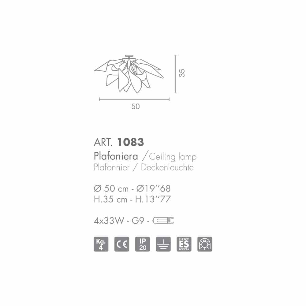 Ingefær er en samling af vigtige dimensioner, i stand til at berige et miljø med tilstedeværelsen af hans mange bands, der danser i luften. Trods bliver lavet udelukkende af metal, tilstedeværelsen af frie pærer sikrer en fremragende lyse resultat og er beregnet til 'brug af 4 33W pærer - G9.