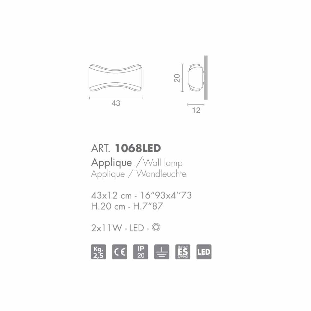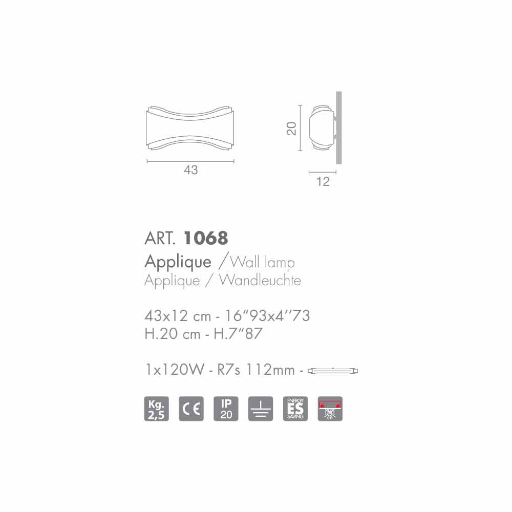 Selene Ionica Appliqué stål og glas håndlavet 43x12 H 20cm