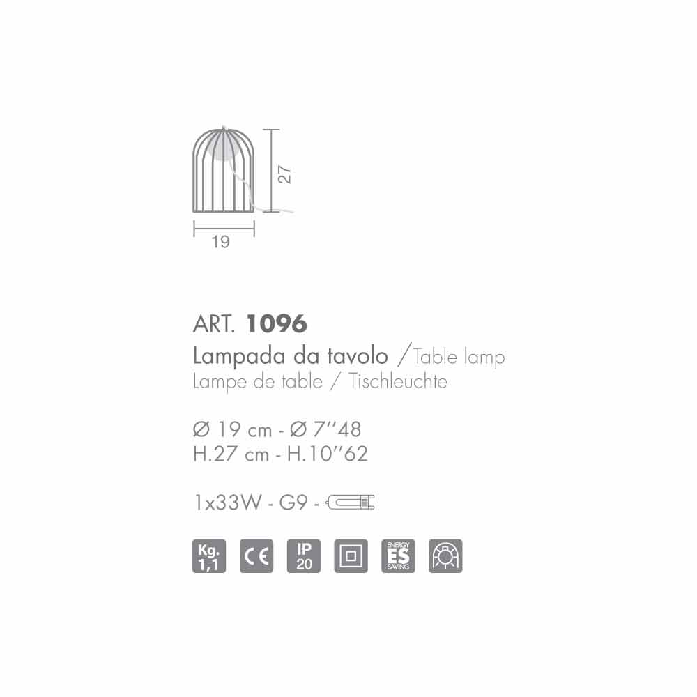 Selene Kluvì bordlampe i metalbur produceret i Italien