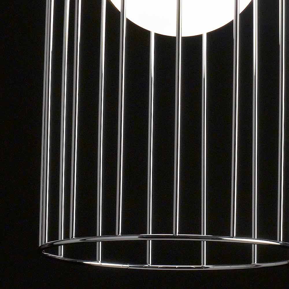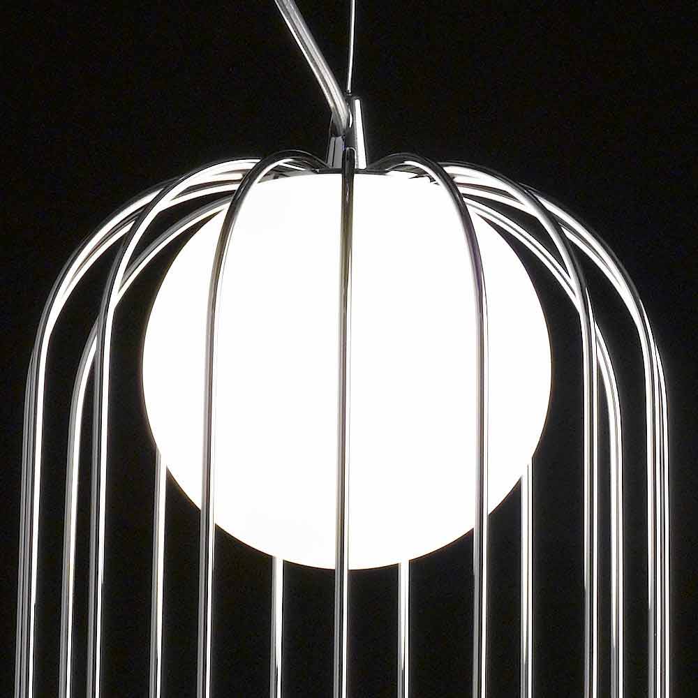 Kluvì er samling af tre suspensioner og te support lamper, som kan nå en betydelig størrelse, bestående af et metal bur og en kugle i mælkehvid blæst glas. Finish: krom; forberedt til den 'utiizzo 1 pære 33W - G9.