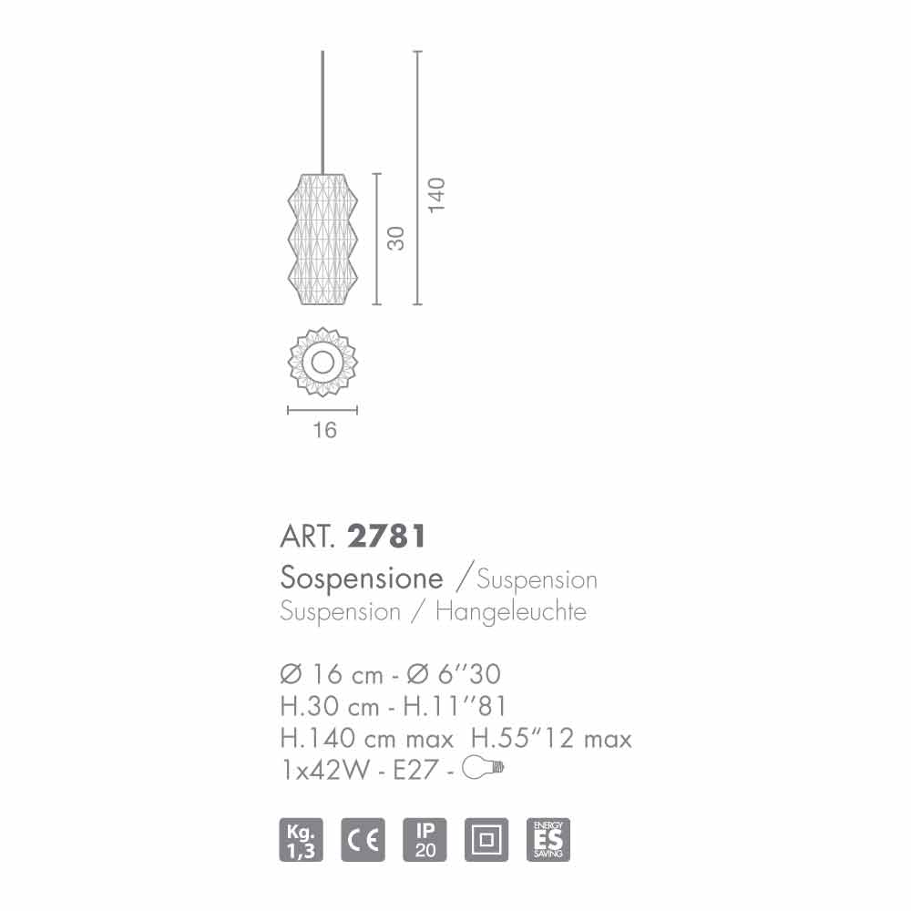 Selene Origami pendel blæst glas Ø16 H 30 / 140cm