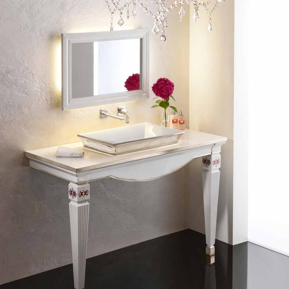 Semirecessed badeværelse håndvask i Italien i ild ler med skinnende hvid indvendig og raffineret i platin på ydersiden.