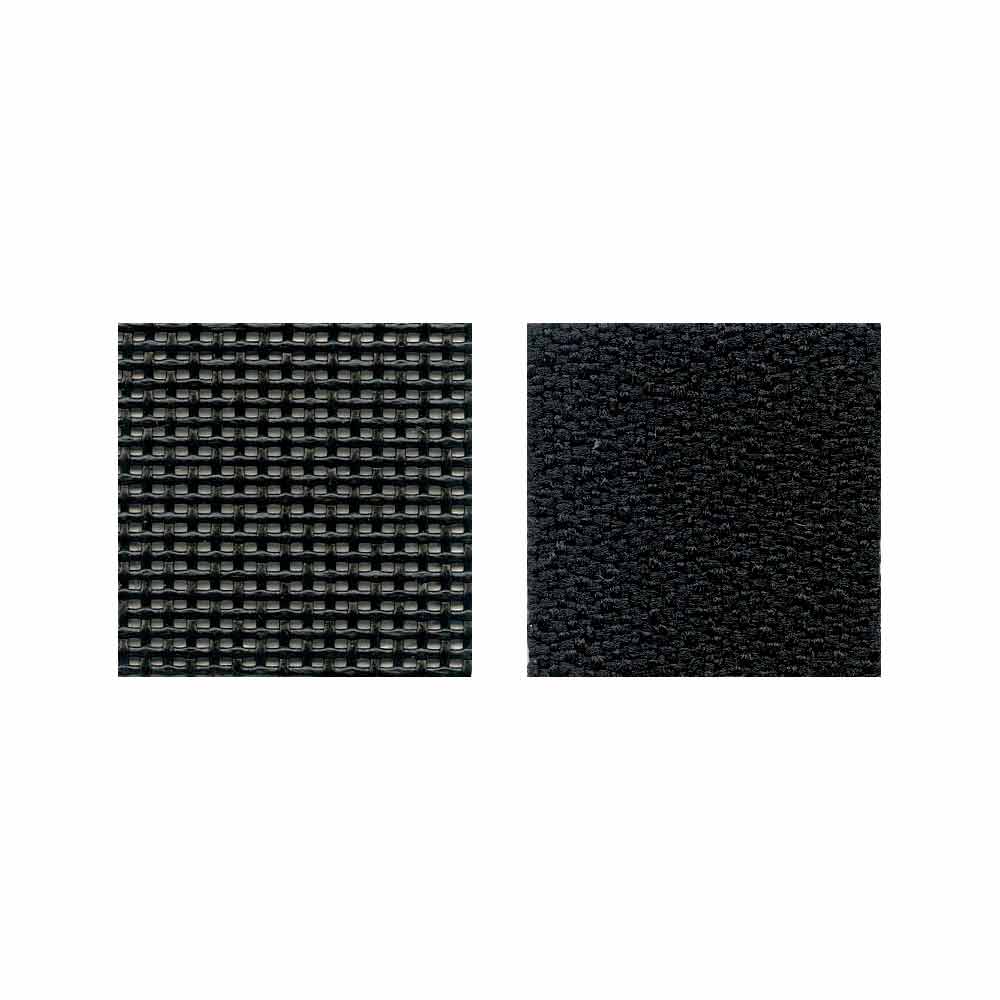 polstret sæde dækket af sort stof og ryg i sort mikroperforeret technorete.