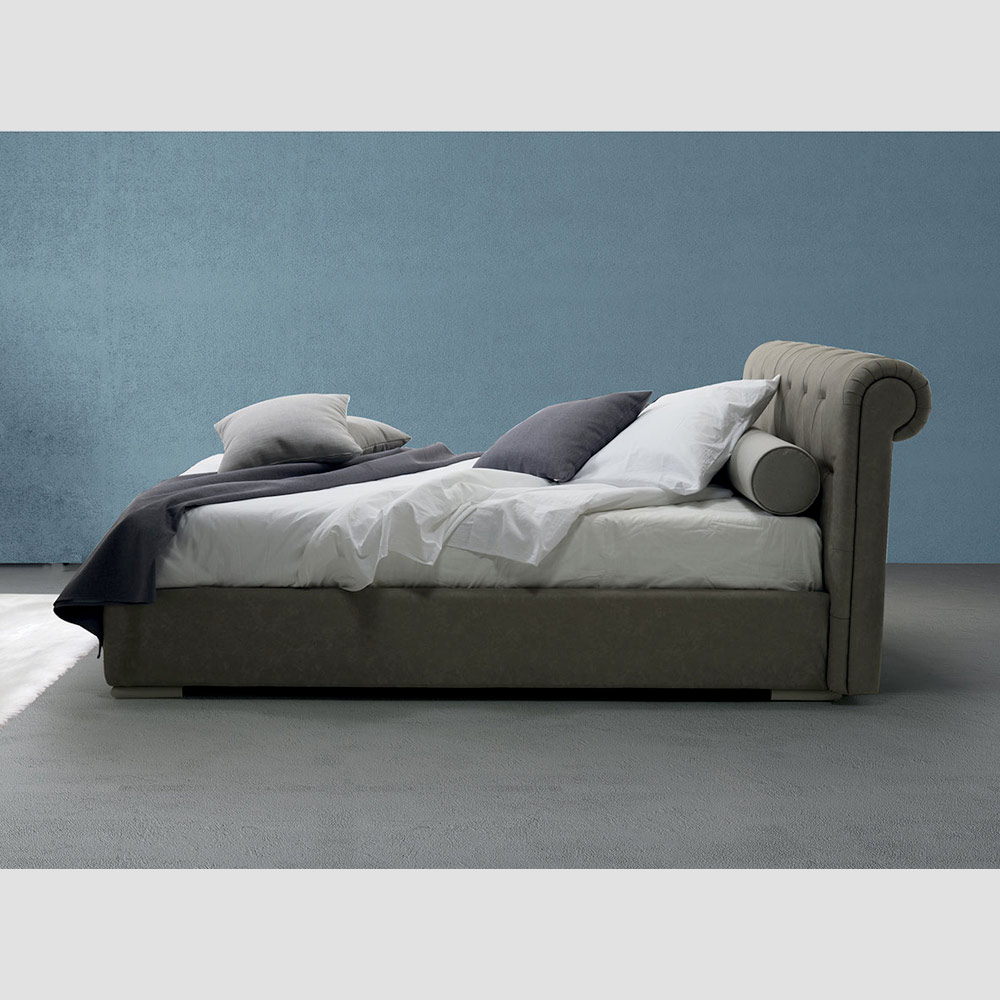 Luksus polstret dobbeltseng i stof eller øko-læder, håndlavet i Italien med opbevaringsboks.