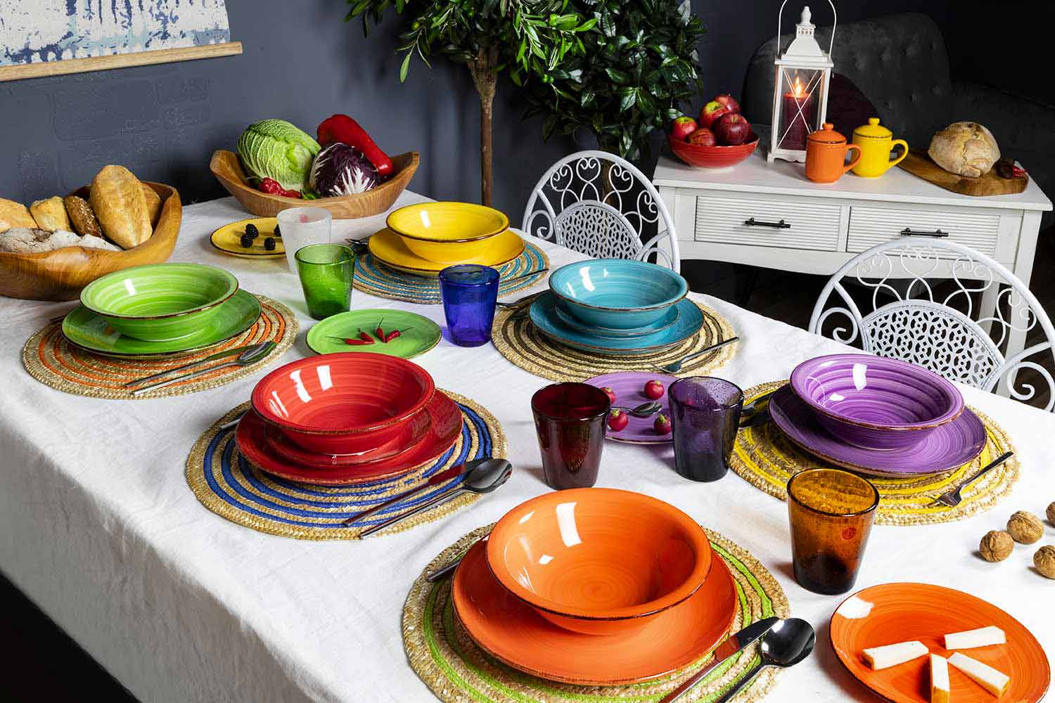 meget varme farver, der ønsker at huske nuancerne på det indbydende og velkendte territorium, for at minde varmen fra de typiske Abruzzo-frokoster foran pejsen.