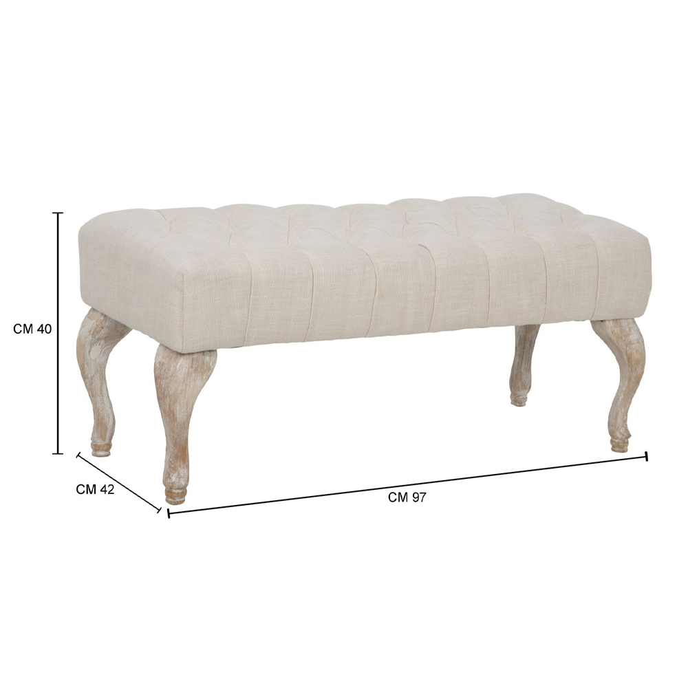 Shabby chic stil bænk lavet af træ med polstret sæde og helt dækket i quiltet effektstof . Et supplement med et enkelt og raffineret design, der beriger hjemlige rum som indgange, opholdsrum, men også soveværelser og korridorer med et eksklusivt præg takket være sin elegante personlighed og sin provencalske stil .